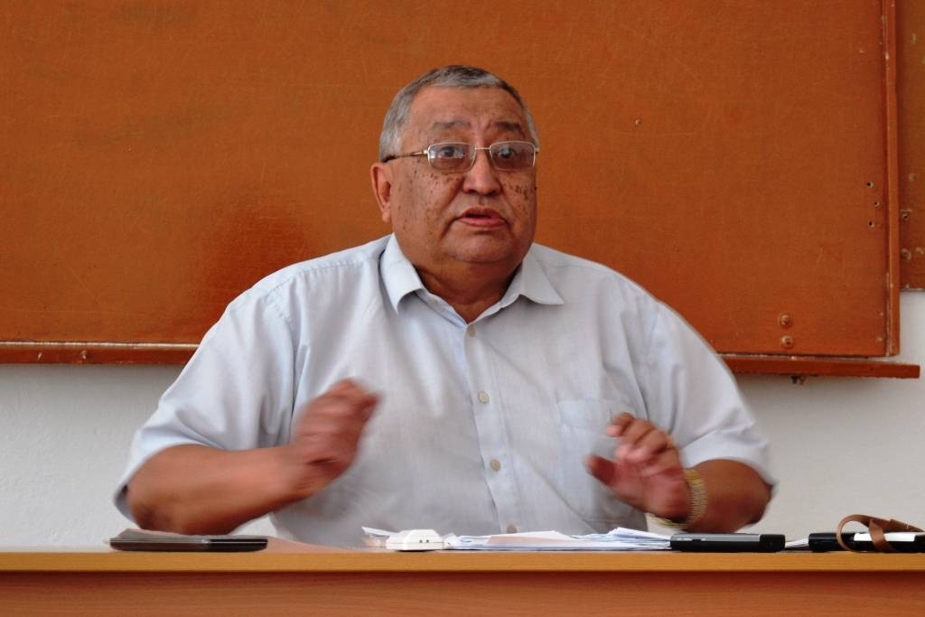 Директор павлодарской школы 27 Жумабек Асылов во время пресс-конференции