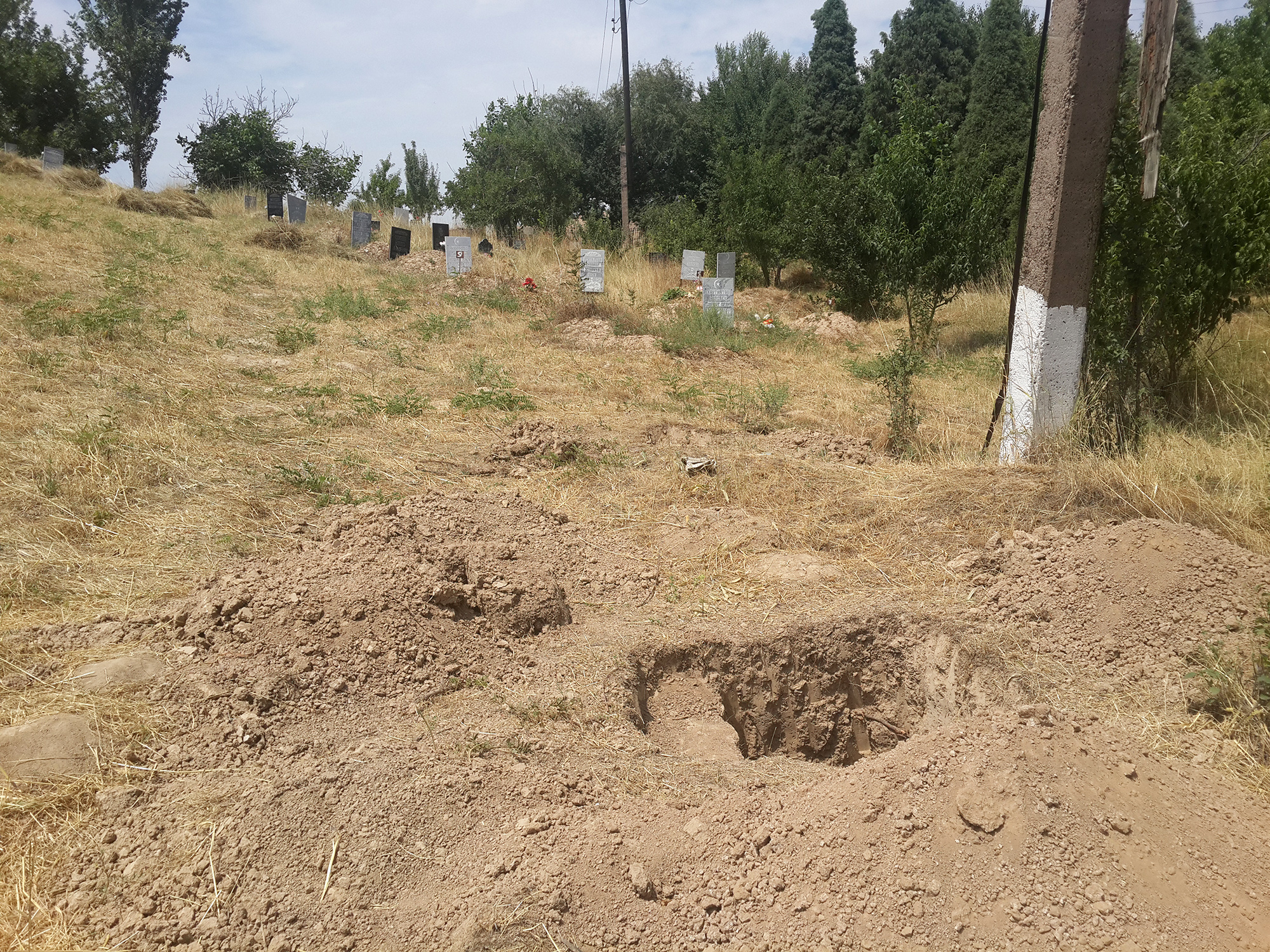 Кладбище поселка Кочбулак. Готовые ямы под могилы