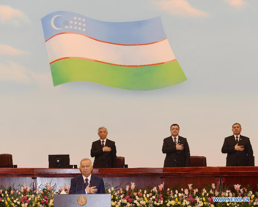 Очередная инаугурация Ислама Каримова состоялась 10 апреля на совместном заседании обеих палат парламента. Стоя перед депутатами парламента, членами правительства, Центризбиркома, судьями Конституционного суда и главами дипломатических ведомств, Каримов, положив руку на Конституцию и Коран, в который раз поклялся «строго следовать Конституции и законам республики, гарантировать права и свободы граждан».