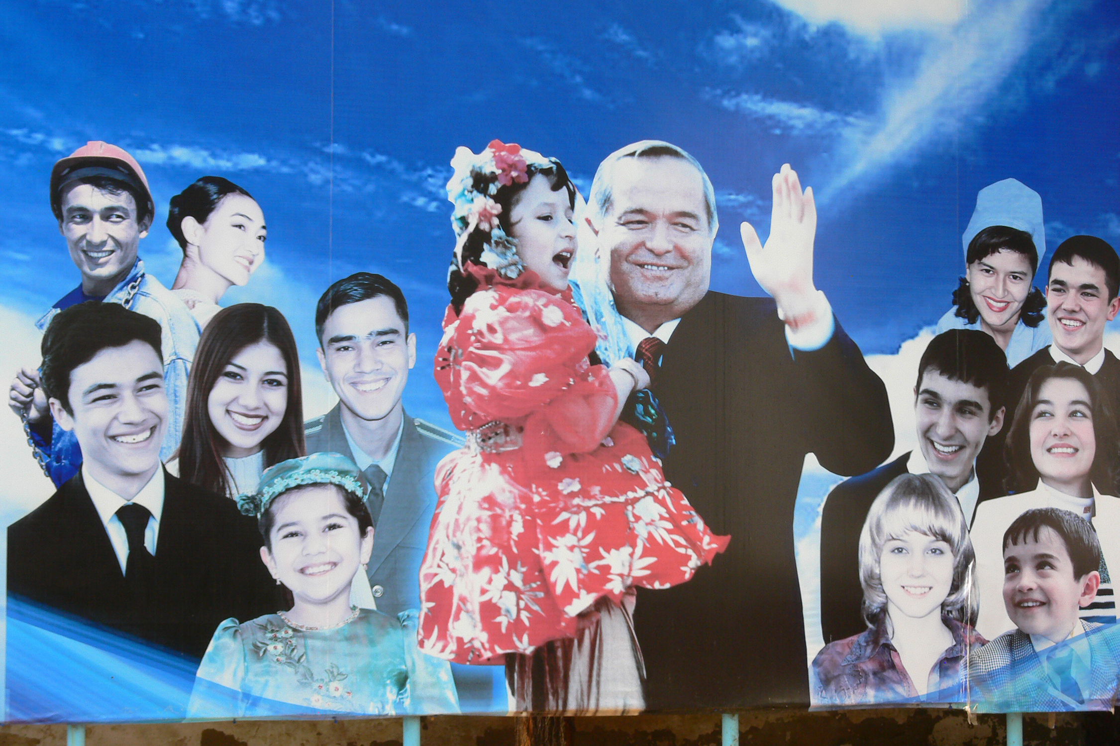 Ислам Каримов. Плакат на улице поселка Кибрай