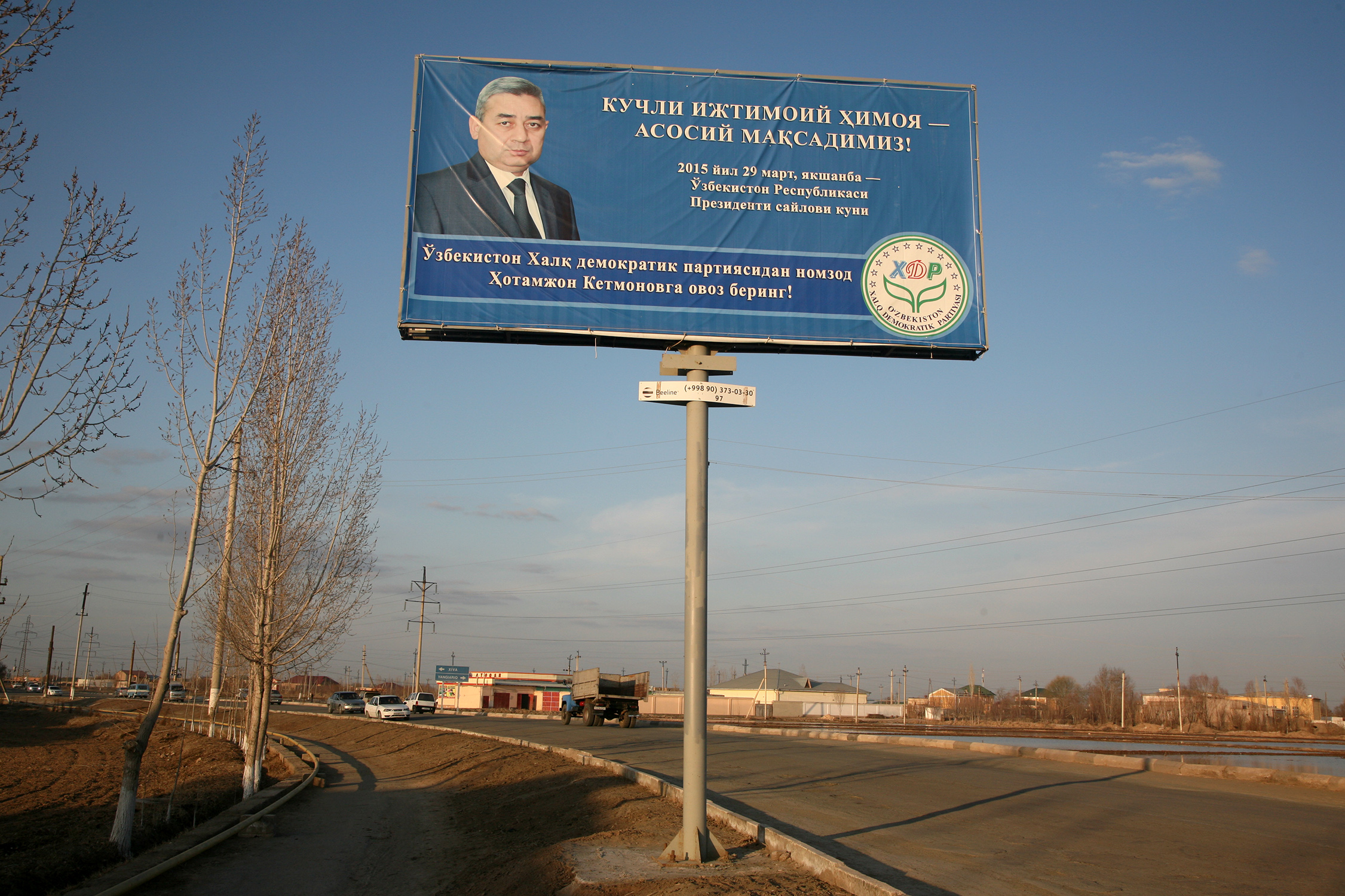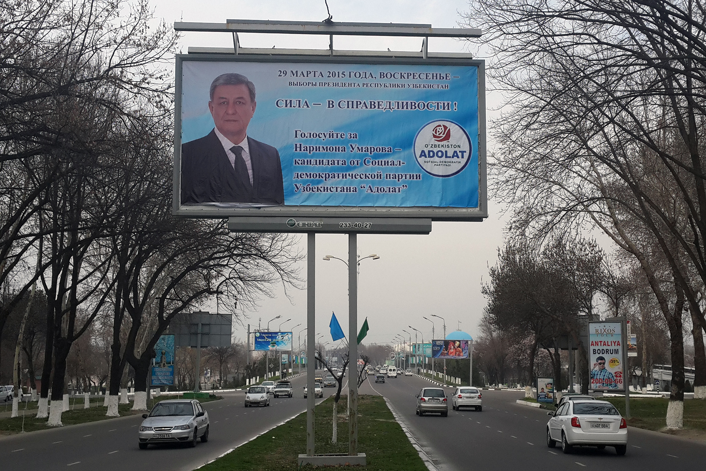 Единственным внешним атрибутом президентской кампании 2015 года стали билборды с портретами кандидатов, установленные вдоль больших дорог и на перекрестках (ранее ничего подобного не было). Каждому из участников выборов предоставили 829 рекламных щитов по всей стране. Все кандидаты выглядели на них очень симпатичными. Ислам Каримов помолодел лет на двадцать и стал похож на доброго дядюшку.