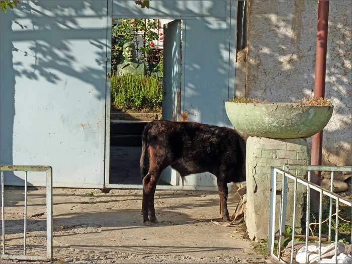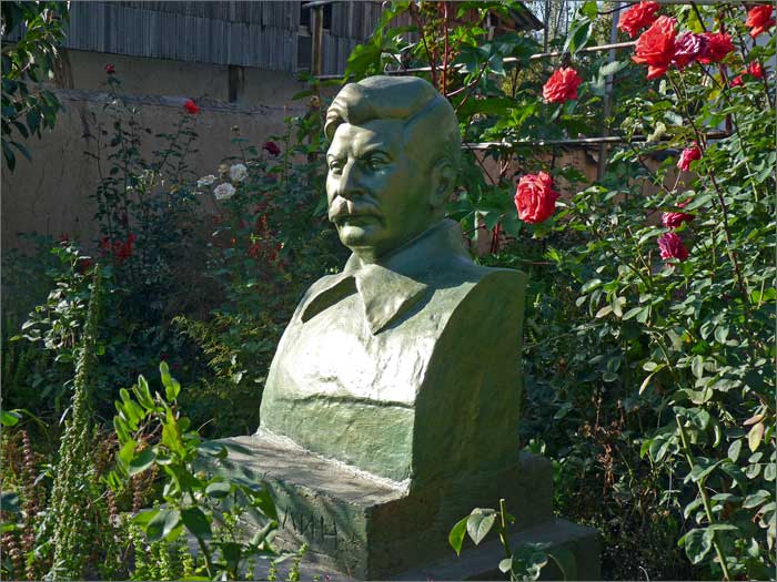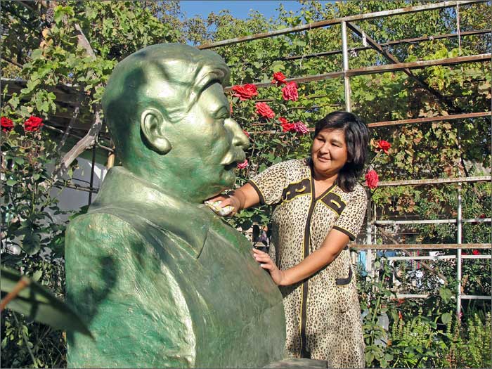 В самом Сайлыке бюст генералиссимуса считается главной местной достопримечательностью. Каждый готов показать дорогу к дому, где он установлен. Когда-то он стоял в центре поселка, но в 1961 году его сбросили и отправили на свалку. Там его и подобрала местная жительница Лазокат Нормирзаева, с помощью родственников доставила скульптуру домой и установила в своем огороде. Особой поклонницей вождя она не была – просто жаль было такое добротное творение. С тех пор вот уже полвека внушительная голова Иосифа Виссарионовича украшает двор своей спасительницы. Зеленый бюст руководителя советской империи обрамляют цветущие розы; сегодня за ним ухаживает, аккуратно стирая с него пыльный налет, дочь хозяйки дома Умида, сама уже не заставшая эпоху обожествления главы коммунистического мира и знакомая с этим временем лишь по рассказам старших.