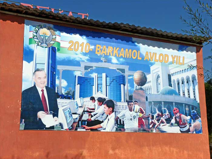 Эстетическое оформление современных идеологических канонов в Узбекистана окончательно завершилось два-три года назад. В русле новосозданной традиции улицы городов теперь украшаются коллажами, где почти обязательно присутствует президент Каримов с маленькой девочкой на руках или с глобусом Узбекистана на заднем фоне, как правило, в окружении радостно смеющихся статистов – дехкан, рабочих, студентов и прочего позитивно настроенного люда; сзади ненавязчиво маячит статуя Тимура. То есть, по сути, тиражируемый образ остается тот же – Великий Вождь и наступившее благодаря его деяниям время всеобщего счастья. Судьба предшествующих изображений такого рода дает возможность понять, как долго они продержатся на улицах и стенах домов. До появления нового вождя.
