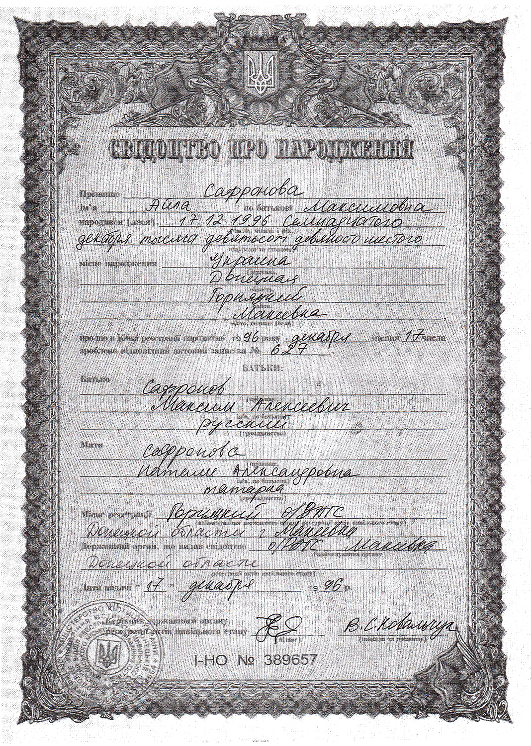 По словам Натали Сафроновой, до 1999 году ее семья проживала на Украине (тогда Айле было всего три года). И она сама, и ее дочь родились в городе Макеевка Донецкой области, а свидетельство о рождении Айлы выписано в Славянске, куда Натали переселилась после замужества.