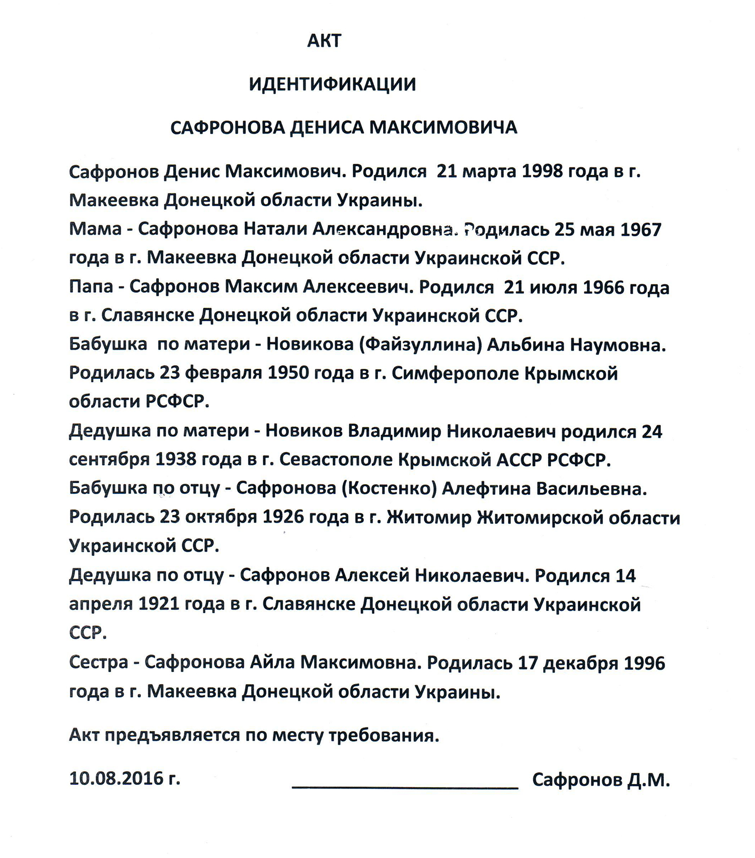 «Заявление у меня приняли, но 9 декабря 2015 года изъяли свидетельство о временном убежище, якобы для продления, взамен выдали справку без фотографии и более чем на год оставили без документов, соответственно, без работы и средств к существованию, - рассказала нашему изданию Н. Сафронова. – Устанавливать наши личности у них не было необходимости, так как мы въехали в Россию совершенно легально, имея на руках подлинные документы, подтверждающие наше украинское гражданство».