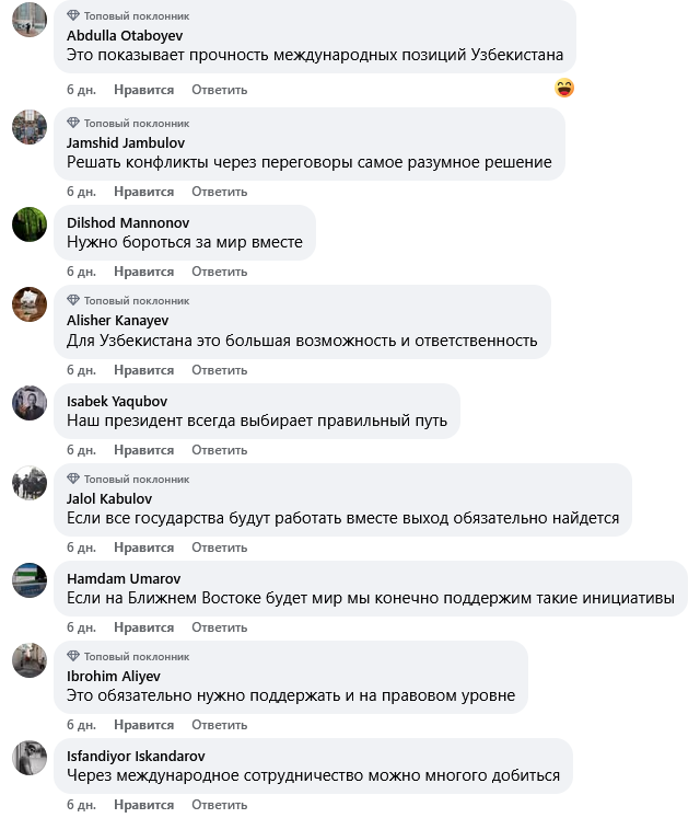 «Очень важно найти решение конфликтов в Газе». Dilshod Mannonov.. Уже оставлял комментарии, профиль описывается выше.