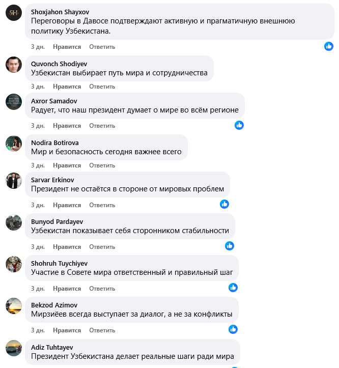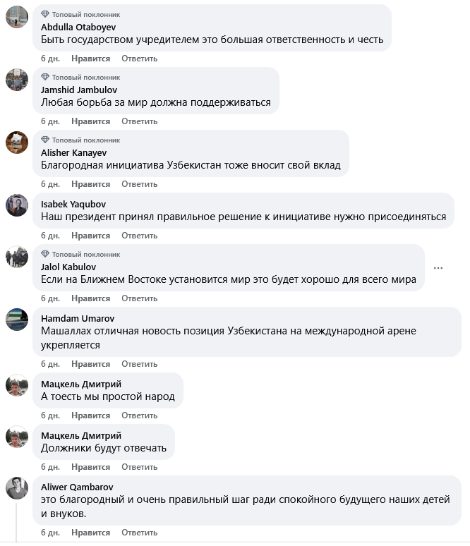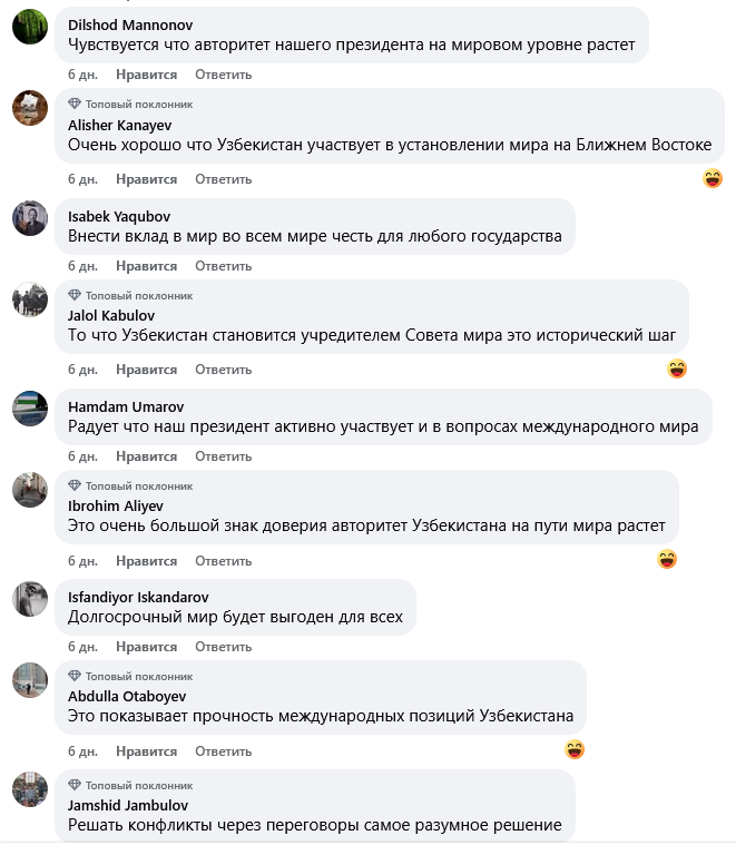 «Участие в Совете мира ответственный и правильный шаг». Shohruh Tuychiyev. Уже оставлял комментарий, профиль описывается выше.