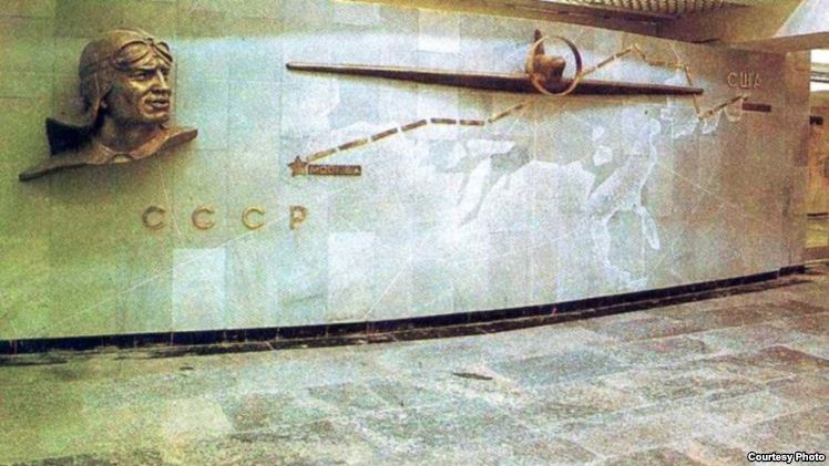Бюст Чкалова на одноименной станции метро, перед выходом на ташкентский авиазавод имени Чкалова. Фото с сайта Ozodlik.org