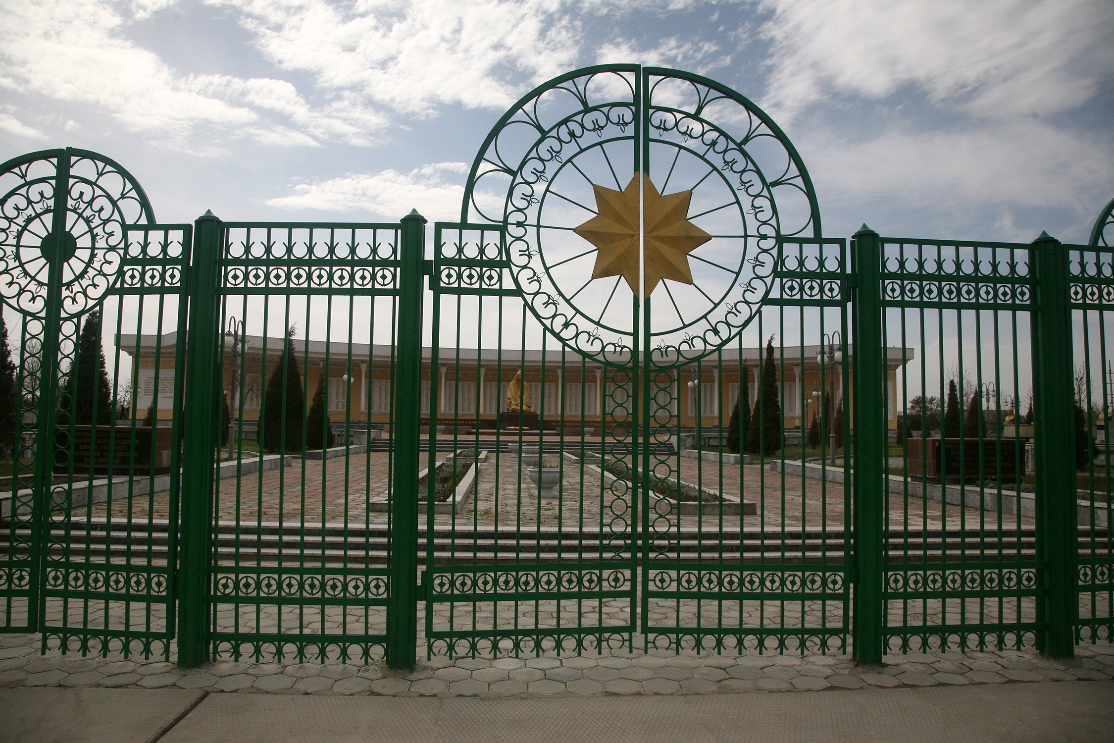 Нередко возле таких скульптур установлены гранитные стелы с надписями на разных языках, извещающими о том, что этот памятник или мемориал воздвигнут по инициативе президента Каримова (без самопиара этот человек, похоже, существовать не может).