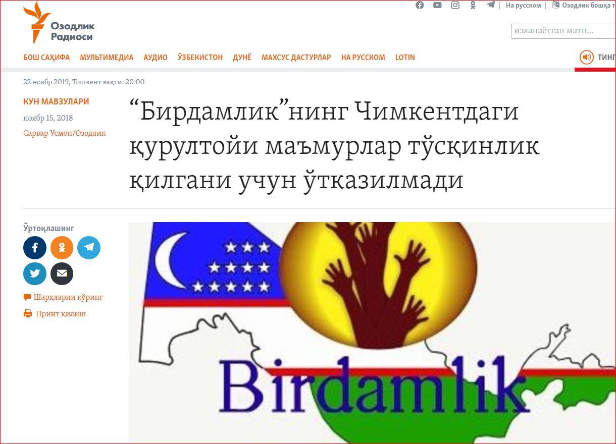 Ссылки на статьи, содержащие интервью с Баходыром Чориевым, его комментарии или информацию о движении «Бирдамлик»: