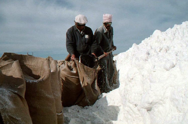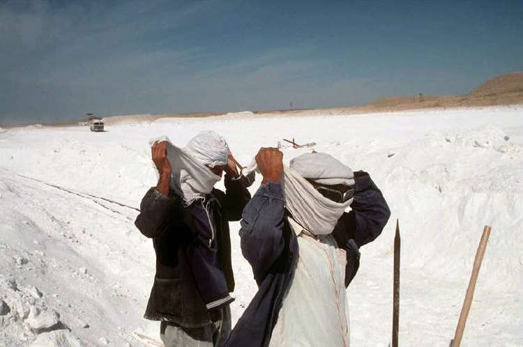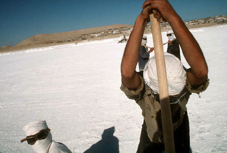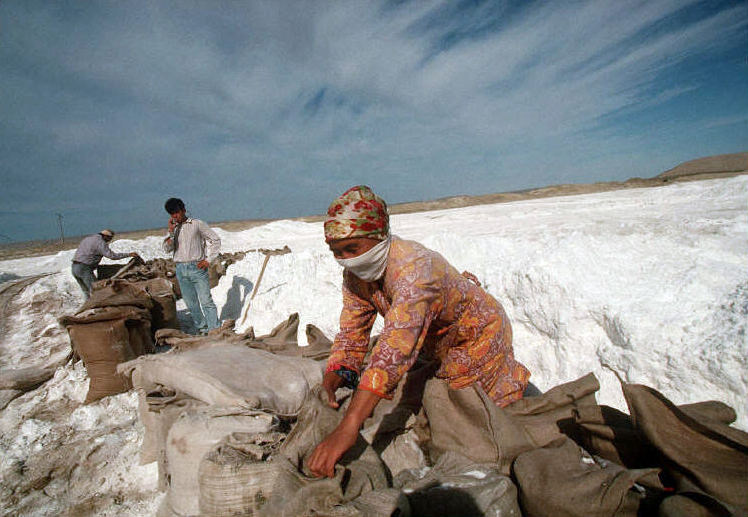 Добытчики соли на озере номер 6, на берегах залива Кора Богаз Гол, 1994