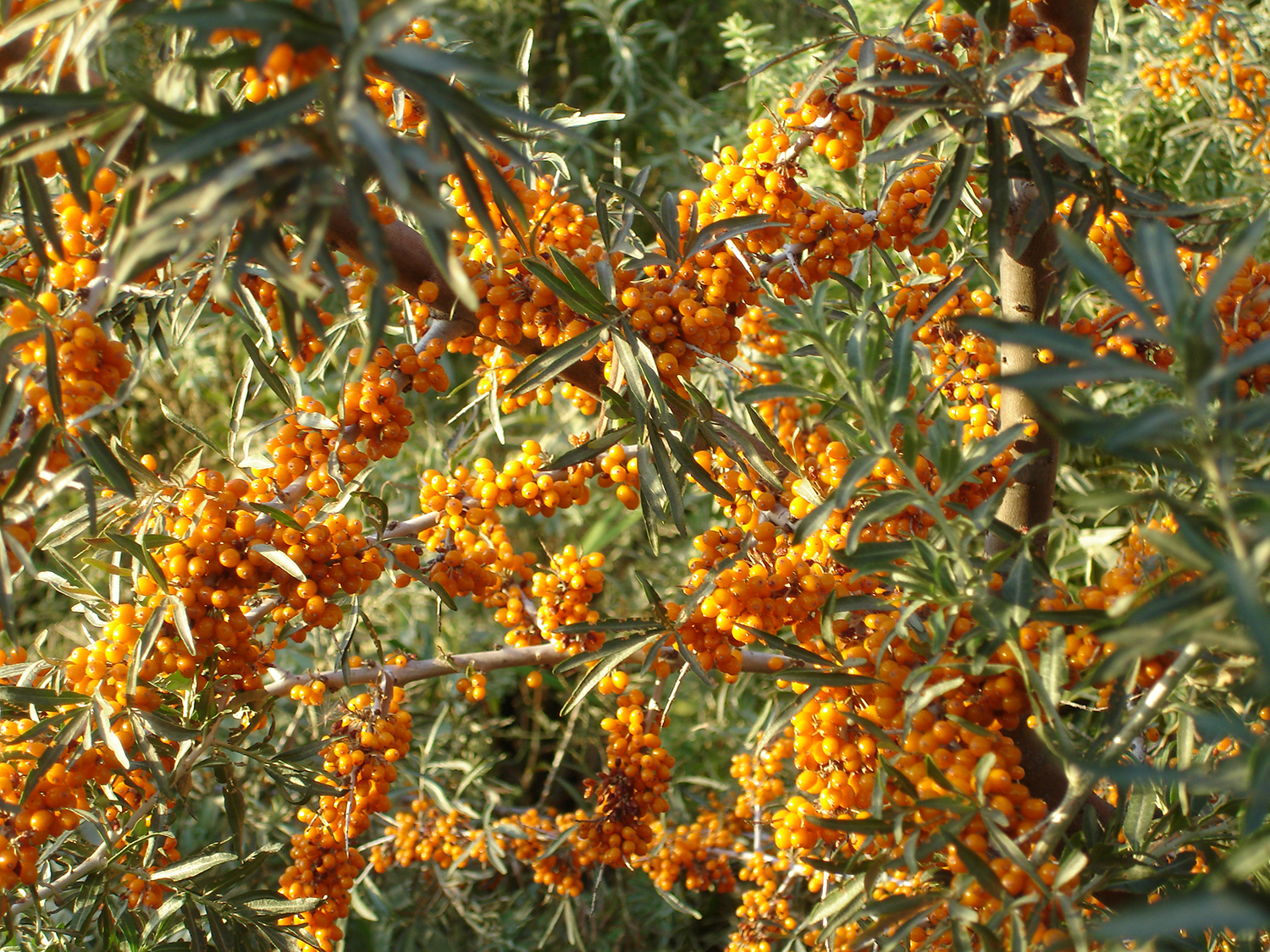 Вдоль тропки пламенеют кусты облепихи. Осень густо обсыпала их янтарно-оранжевым бисером. Это тоже своеобразная особенность Зарафшанского заповедника: в нем произрастает семнадцать сортов крушиновидной облепихи, отличающихся друг от друга величиной, цветом и вкусом ягод.