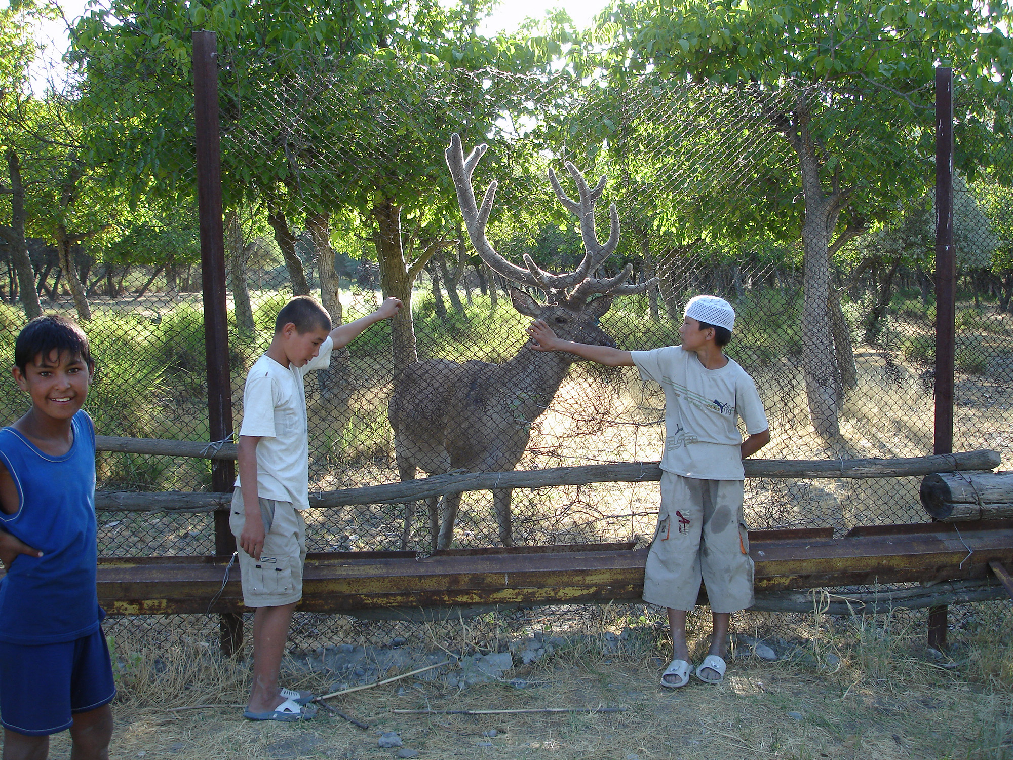 И вот, при поддержке Французского национального Центра научных исследований, который первым начал финансировать программу по восстановлению бухарского оленя, в 1996 году в Зарафшанском заповеднике появились первые переселенцы из заповедника Бадай-тугай. Их было четверо. Через год привезли еще двоих, совсем крошечных, выкормили и выпоили их. Все олени пока живут в больших вольерах, где чувствуют себя довольно неплохо. Родились и новые, так что общая численность их уже составляет 16 особей (один погиб – подавился яблоком). Контроль над выполнением программы по спасению оленя осуществляет кандидат биологических наук Наталья Мармазинская. Когда численность оленей в вольерах заповедника достигнет пятидесяти, предполагается понемногу выпускать их на волю – в заповедник. Ориентировочно это должно произойти через 3-4 года. Таковы планы. Но как это будет осуществляться на практике - одному Богу ведомо. Олень животное не капризное, без прямого беспокойства из густых зарослей он не выйдет. Но распугать маленьких оленят очень легко. А также спугнуть оленей весной, во время периода размножения. Обстановка же в заповеднике, как я говорил, такова, что по нему не разгуливает только ленивый. Выпускать сюда оленей? И они будут здесь жить? Это фантастика. Сосуществовать олень и человек не могут. Потому, что человек в сельской местности Узбекистана без коровы не бывает. И пасти ее он предпочитает там, где травы побольше. То есть именно в заповеднике.