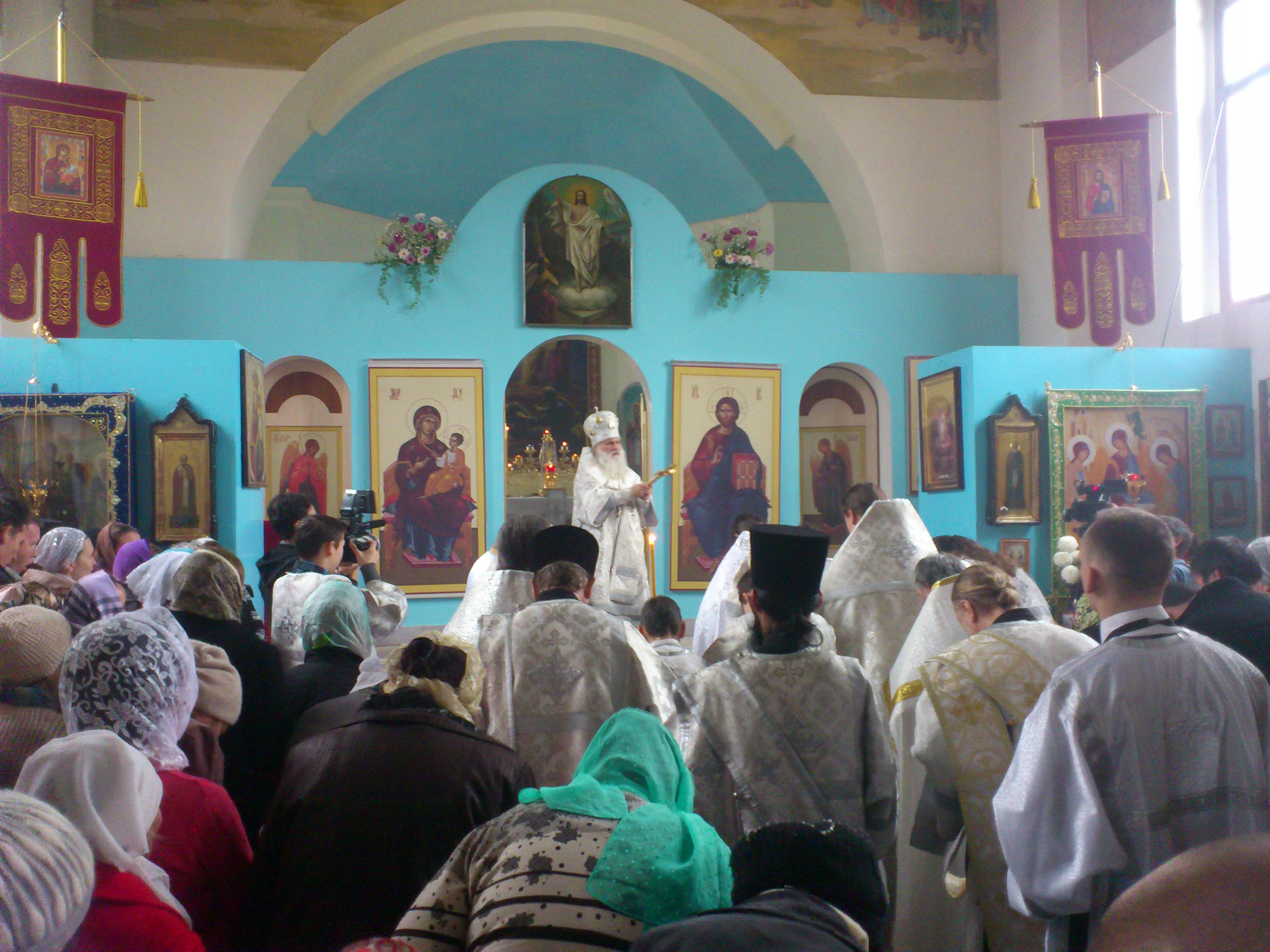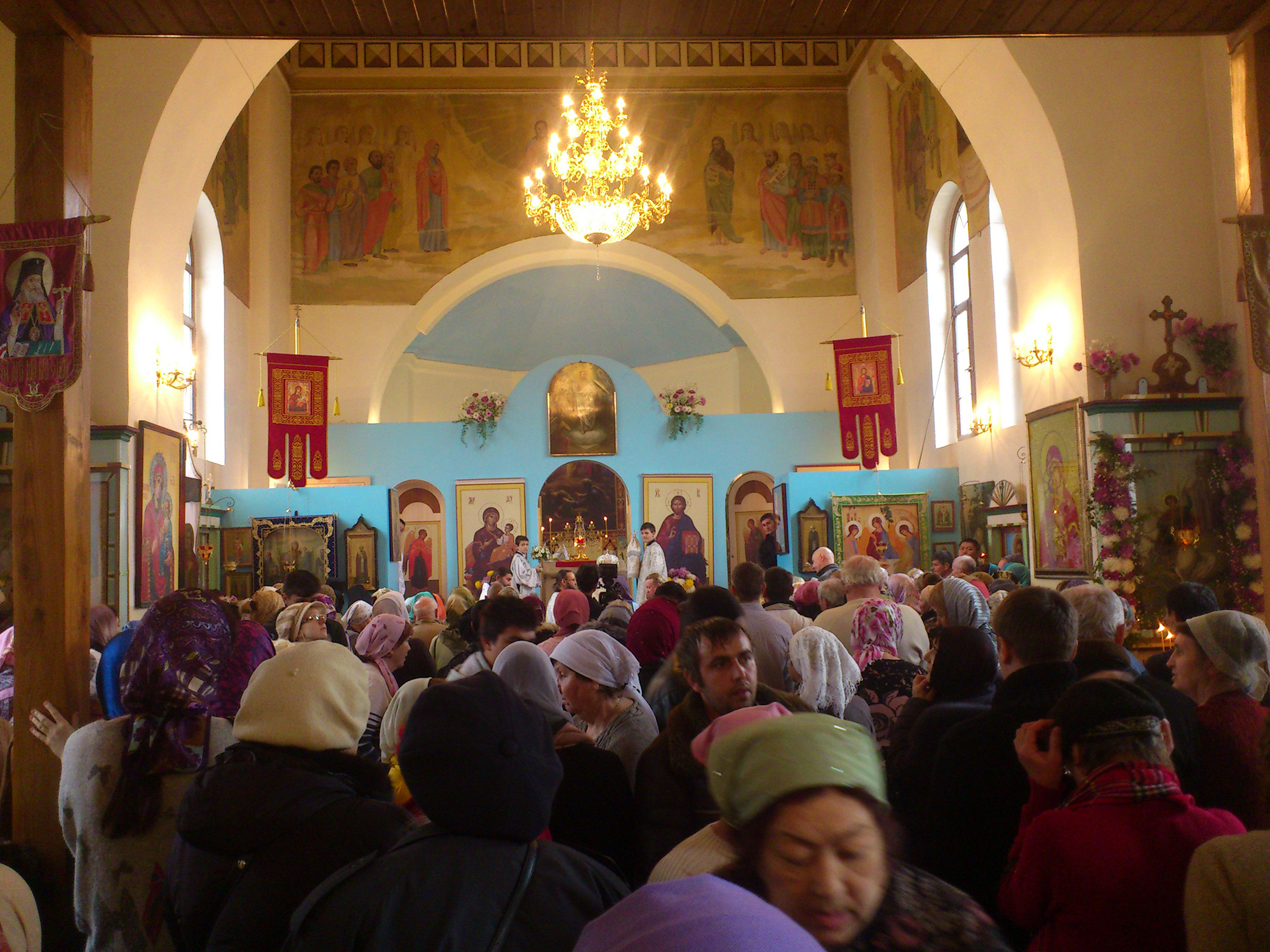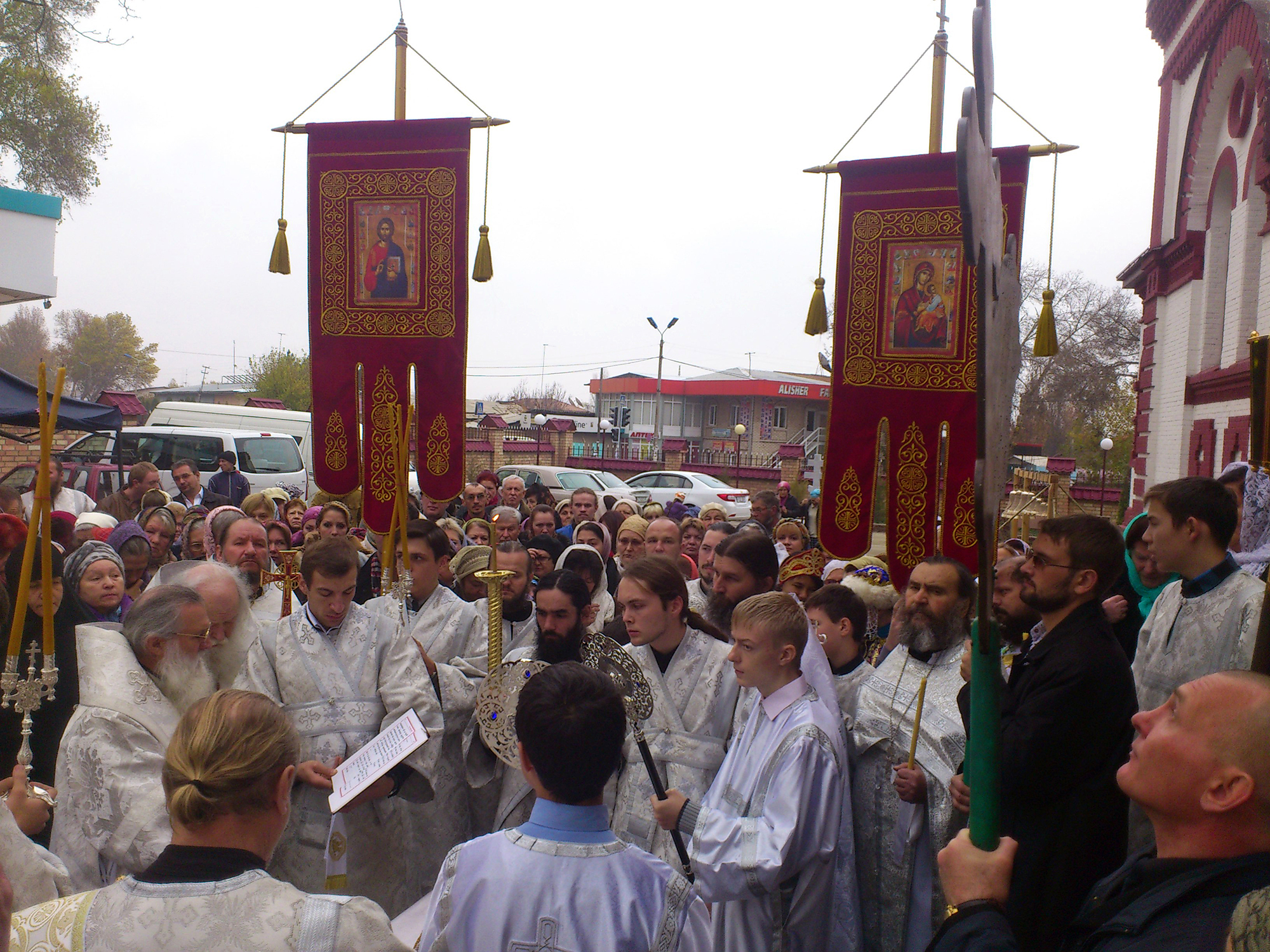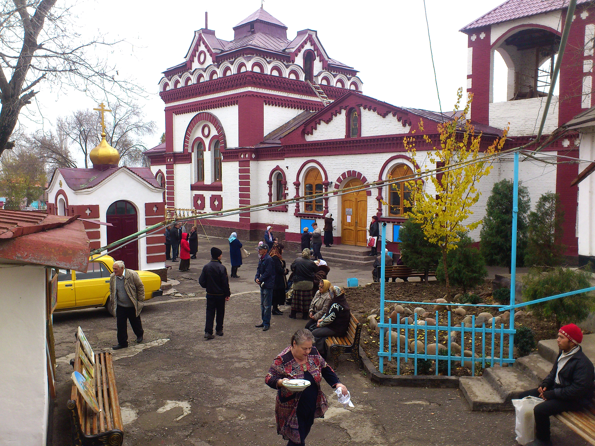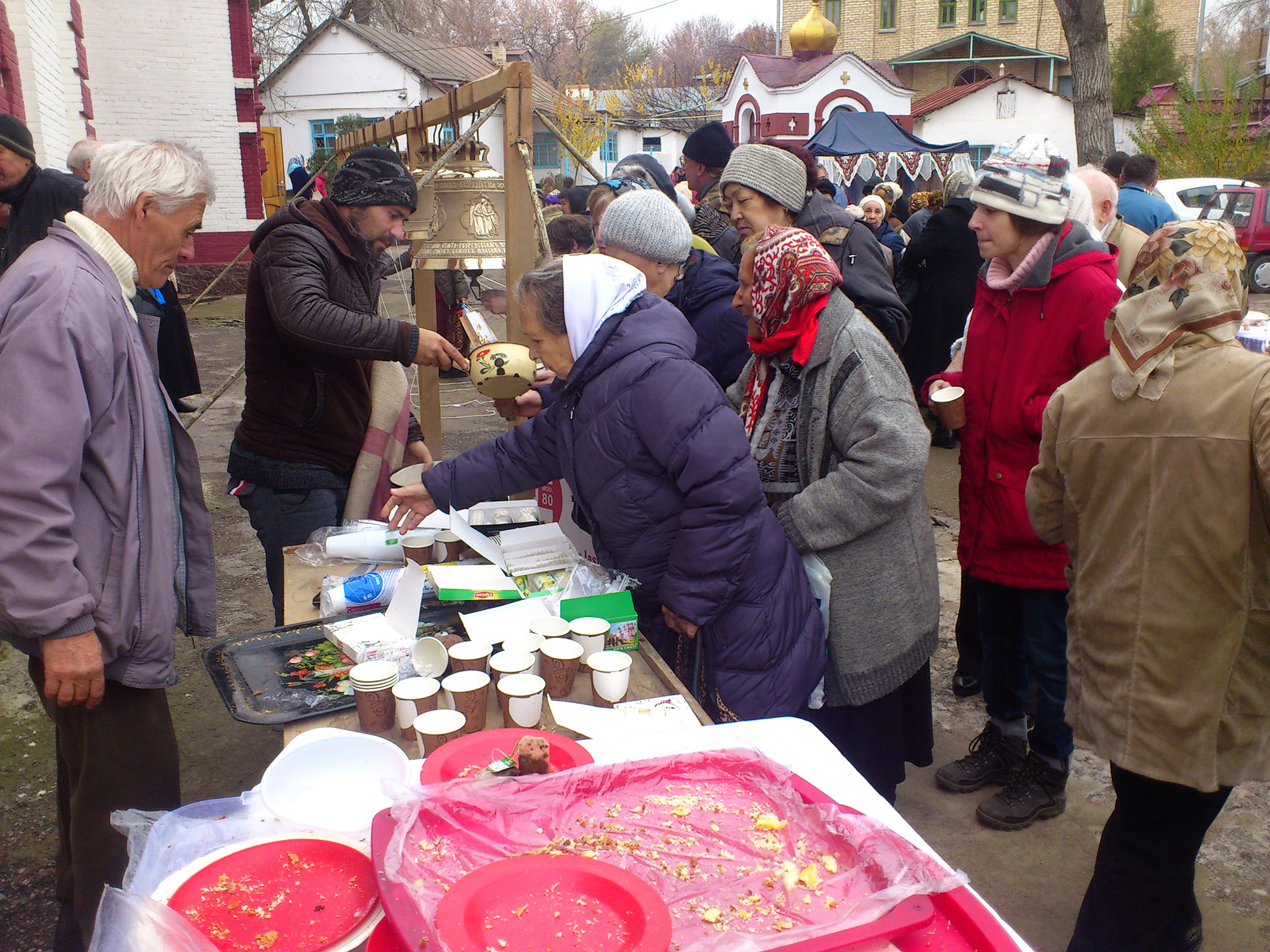 Служба продолжалась с утра до полудня и закончилась праздничным обедом. На церковном дворе были выставлены столы с угощениями для прихожан. В трапезной монастыря отобедали священнослужители. Наряду с православными кушаньями подавали узбекский плов, приготовленный на монастырской кухне.