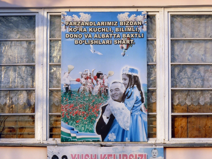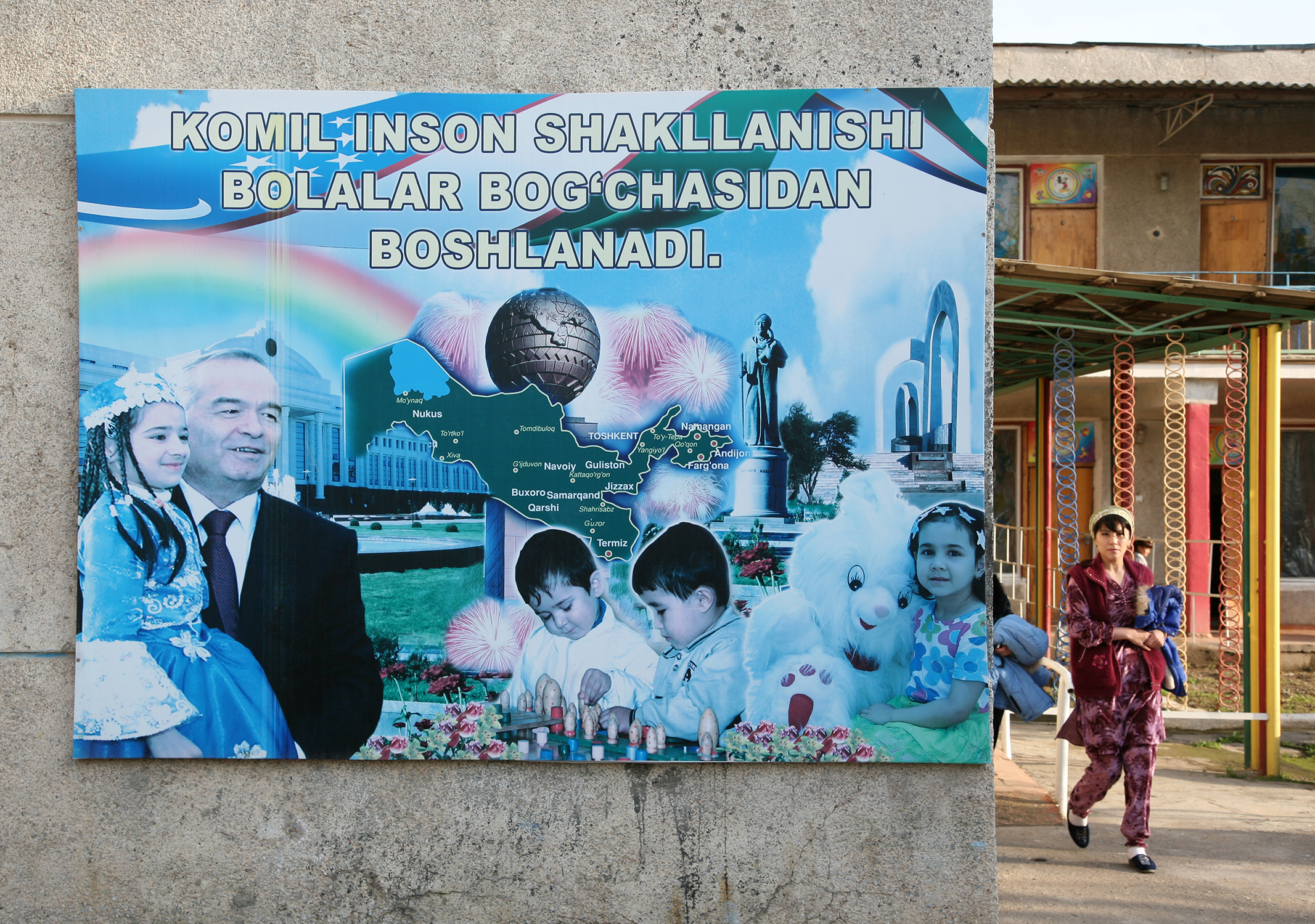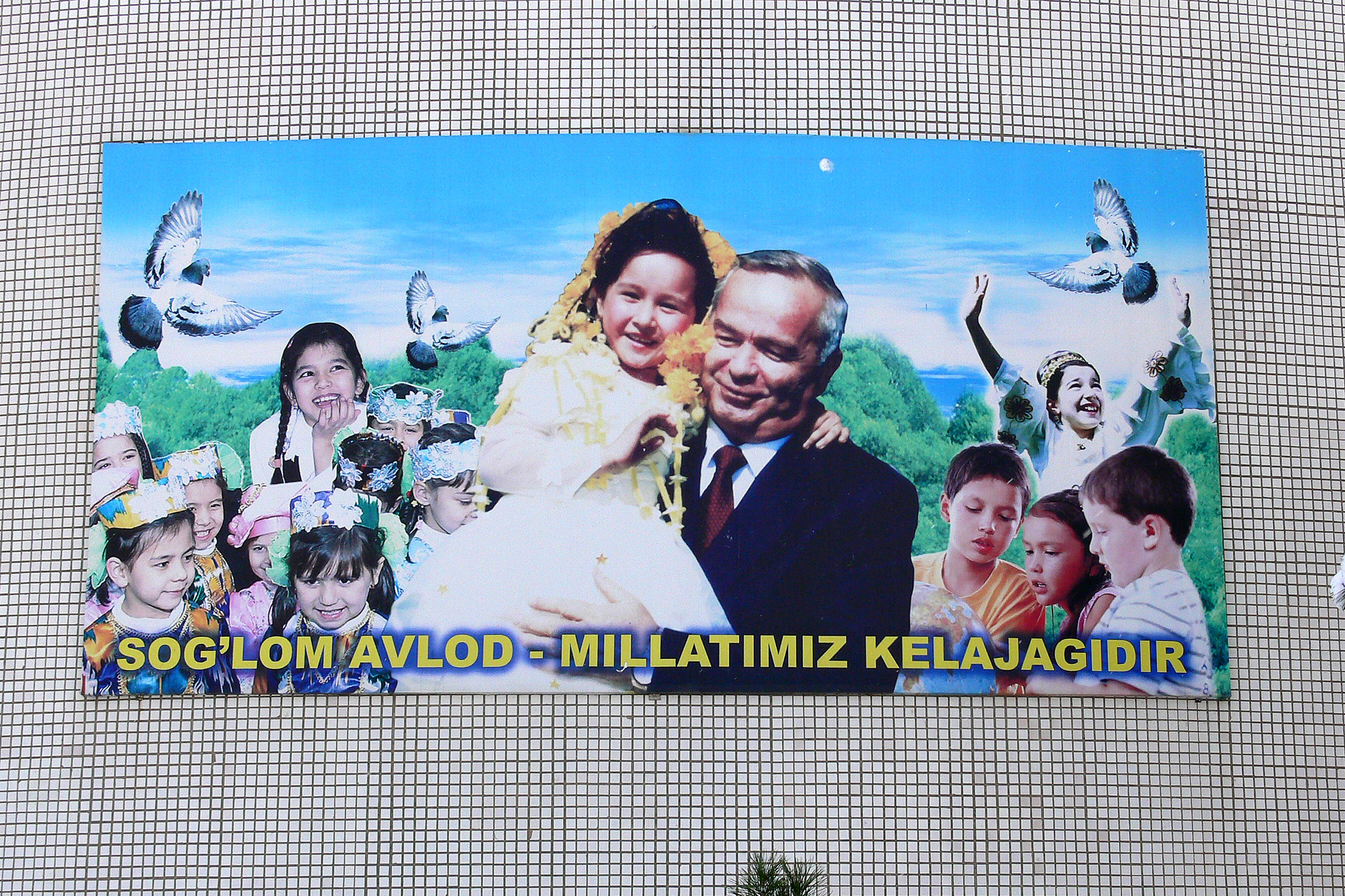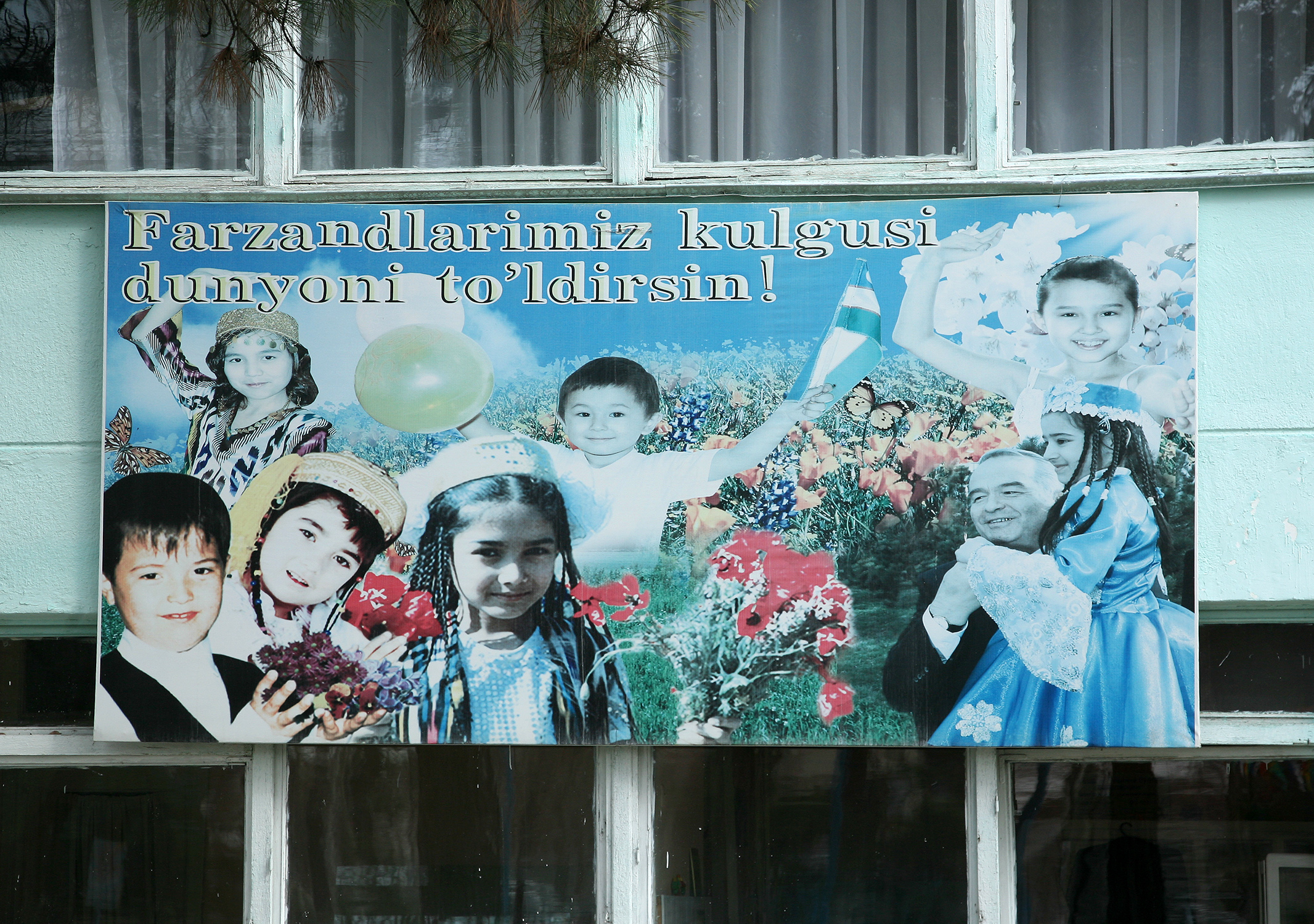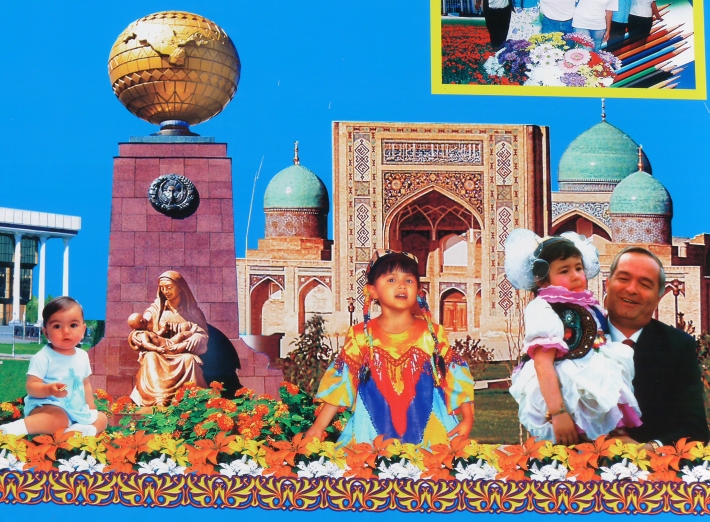 Президент Узбекистана предпочитал, в основном, девочек, выполняющих роль безымянных статисток – их имена и фамилии никому не известны. Изготовленные впоследствии коллажи и агитплакаты крепились в тех местах, где дети могли бы впитывать информацию о том, кому они всем обязаны, что называется, на клеточном уровне.