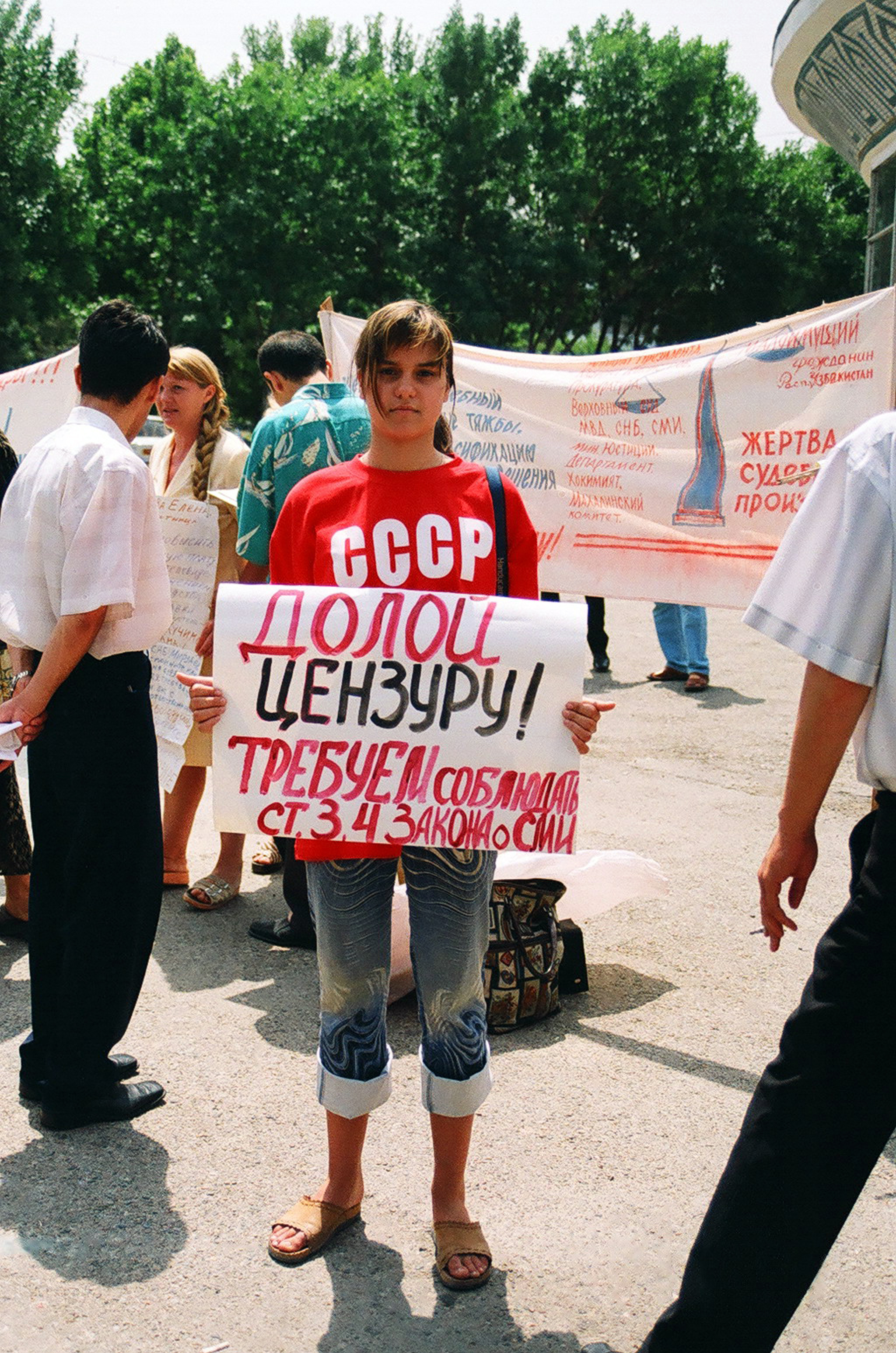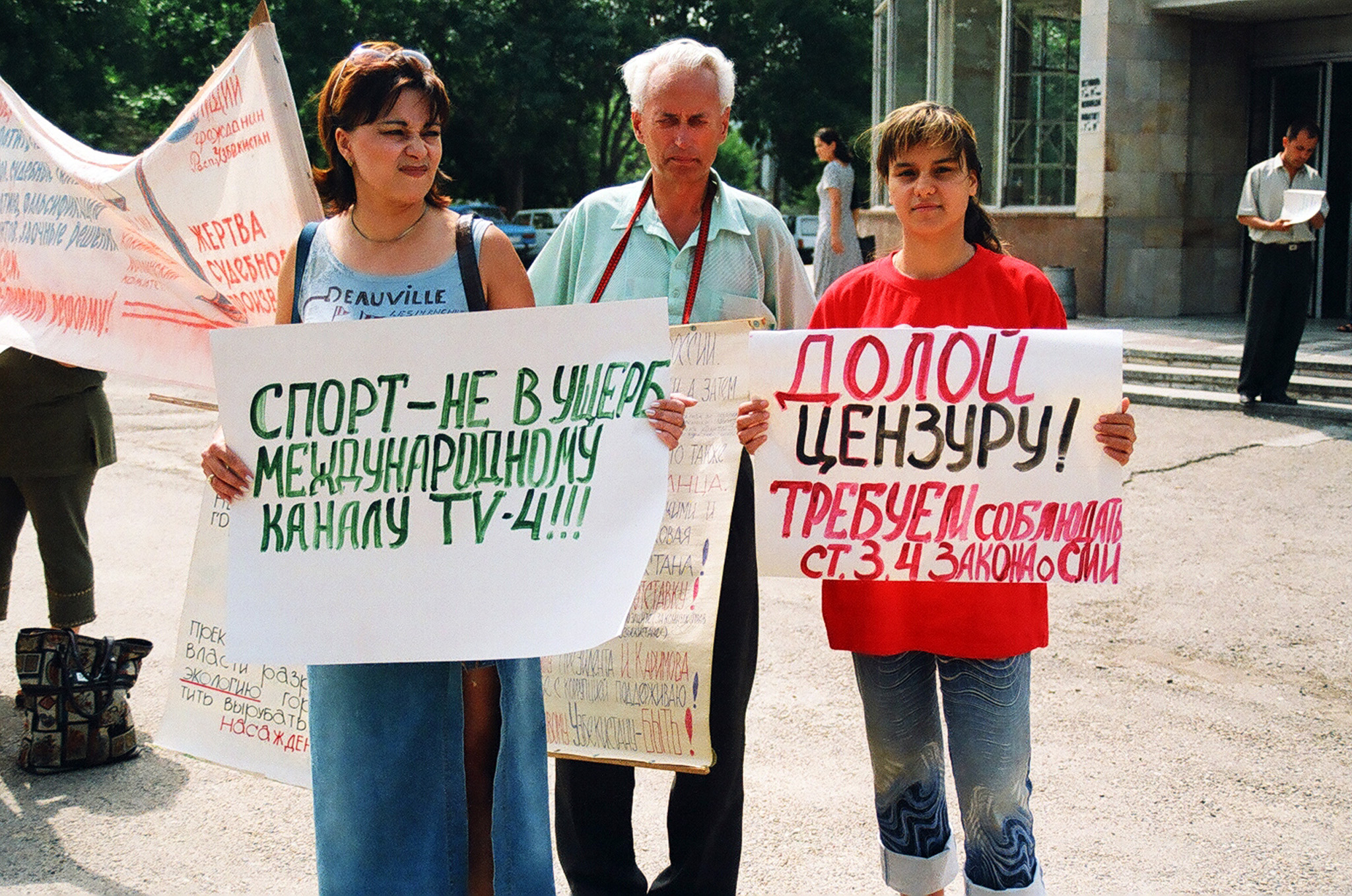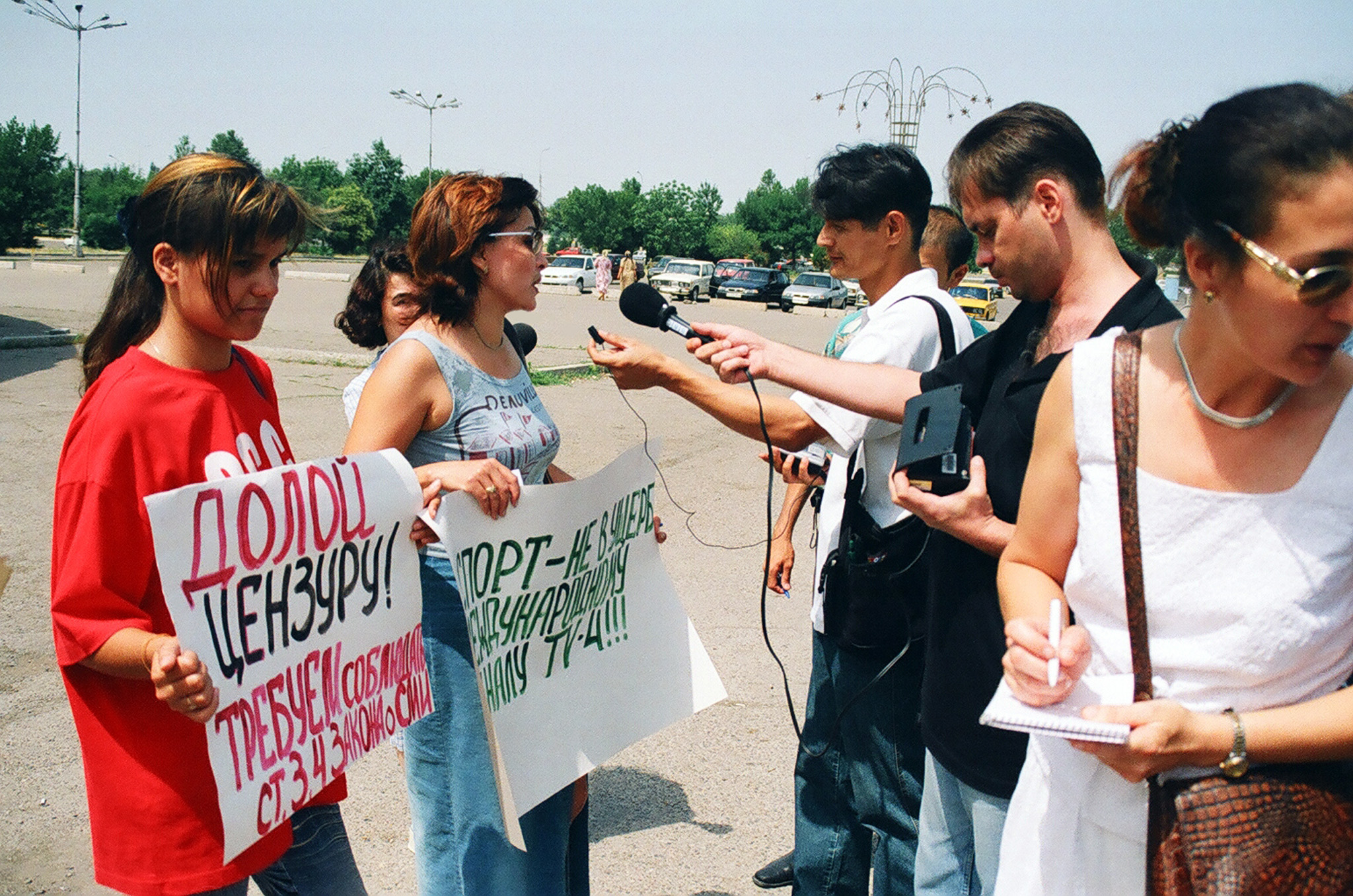 «В минувшую пятницу прошел профессиональный праздник журналистов – День печати и работников средств массовой информации. Незамеченным он не остался: к этому дню приурочили свои выступление участники пикета, которые провели акцию протеста возле газетно-издательского комплекса «Шарк». Собравшиеся (человек 10-15) потребовали отставки редакторов республиканских газет – «Народного Слова», «Халк Сузи» и некоторых других, выдвигались и иные требования. Свои выступления пикетчики мотивировали тем, что, по их мнению, редактора этих газет не пропускают никаких критических материалов, выполняя, таким образом, роль цензоров, что конституцией запрещается.