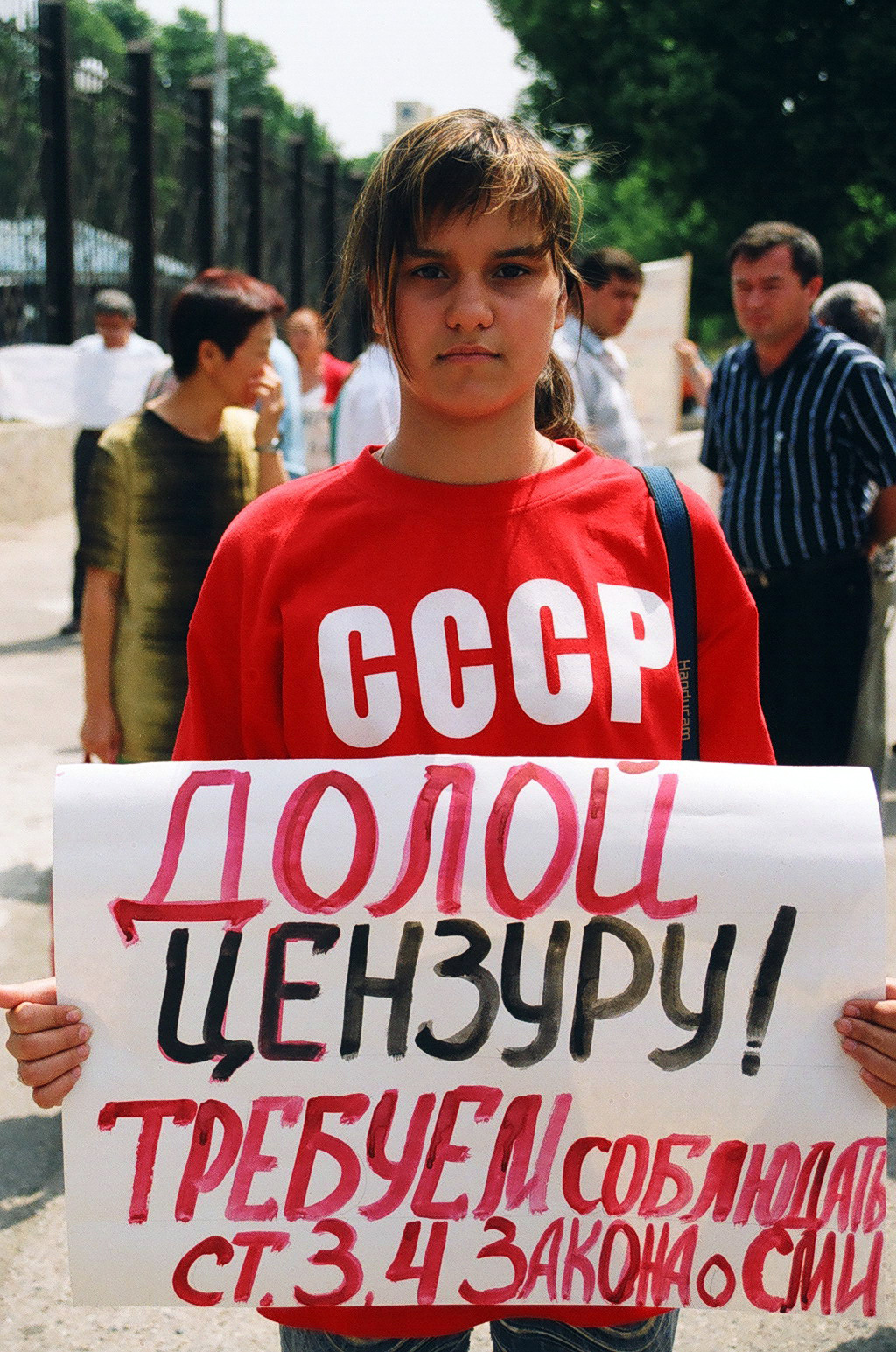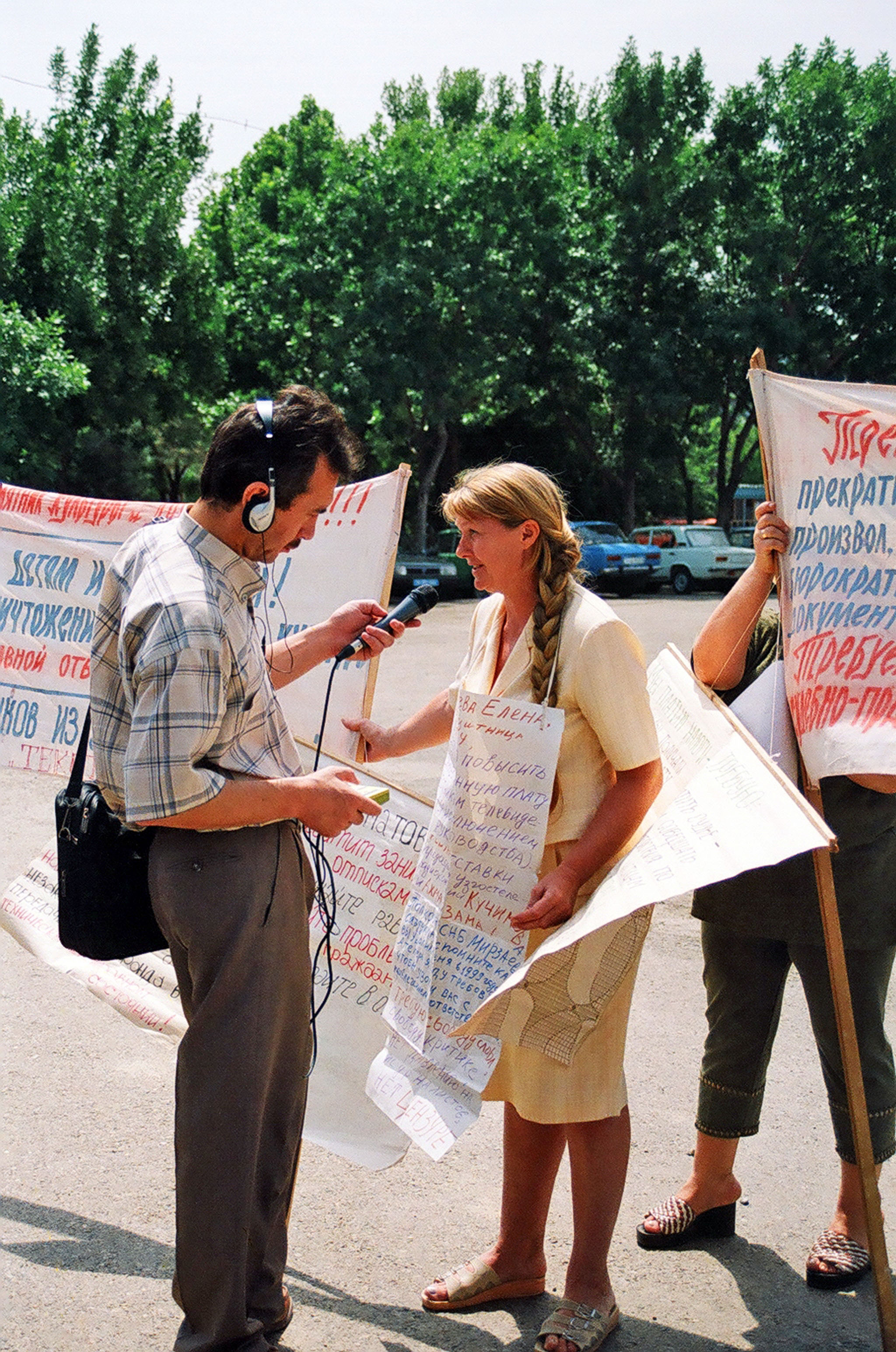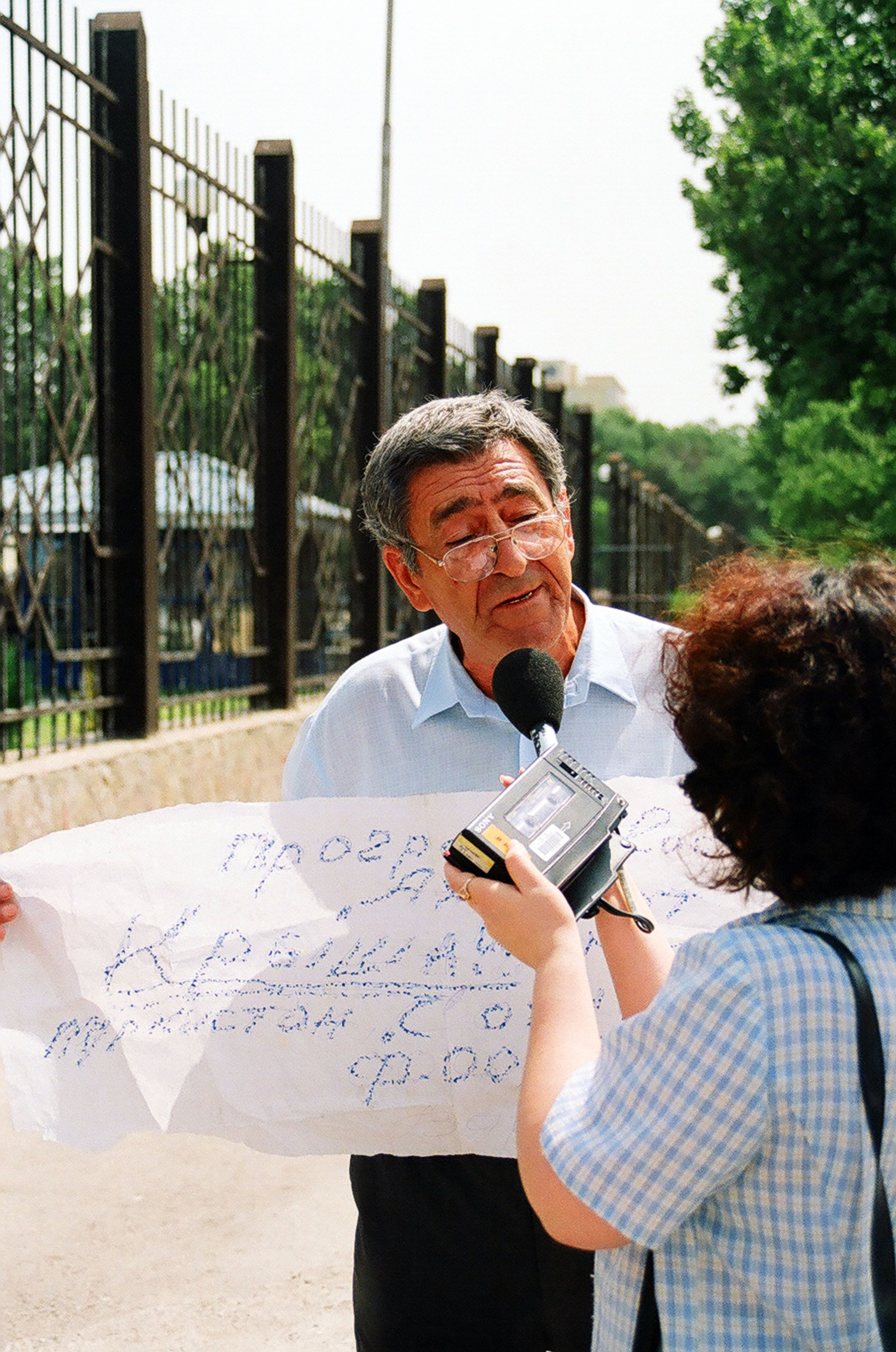 «В минувшую пятницу прошел профессиональный праздник журналистов – День печати и работников средств массовой информации. Незамеченным он не остался: к этому дню приурочили свои выступление участники пикета, которые провели акцию протеста возле газетно-издательского комплекса «Шарк». Собравшиеся (человек 10-15) потребовали отставки редакторов республиканских газет – «Народного Слова», «Халк Сузи» и некоторых других, выдвигались и иные требования. Свои выступления пикетчики мотивировали тем, что, по их мнению, редактора этих газет не пропускают никаких критических материалов, выполняя, таким образом, роль цензоров, что конституцией запрещается.
