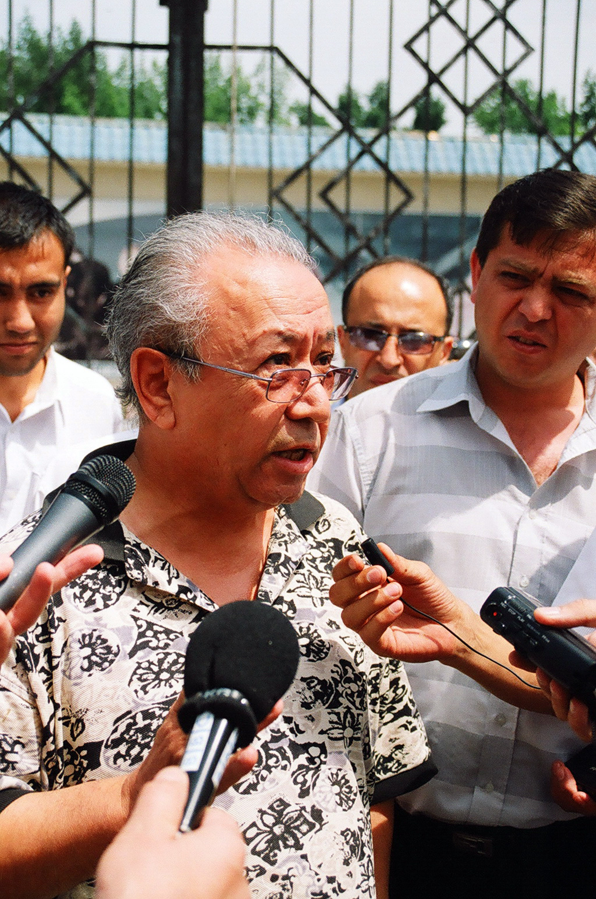 - Я Баходыр Ахмедов, кинорежиссер со студии Узбектелефильм. Заявляю, что тут идет этот оголтелый, даже не знаю, как назвать, всё это к тому, чтобы у нас было неспокойно на телевидении. Я считаю, что всё это неправильно. Всё это безосновательно и пустая болтовня. Мне нужны факты, а никаких фактов здесь нет. Я считаю, что все пикетчики подкуплены.