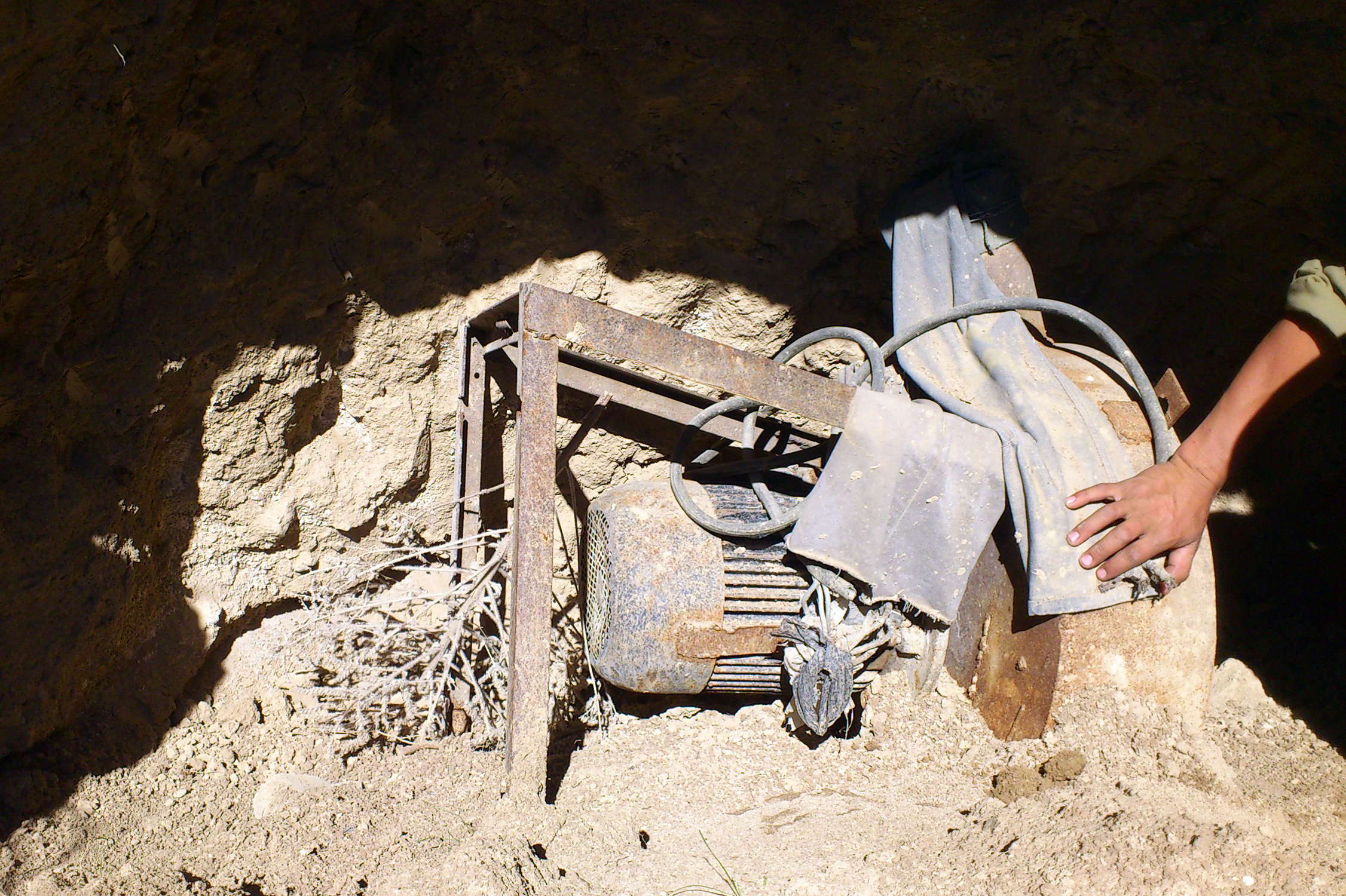 Пока я махал кувалдой, Бахром достал из тайника самодельную дробилку на металлических опорах. Она представляла из себя большой электромотор с самодельным барабаном, внутри которого вращался самодельный нож из толстой железной пластины, разбивающий камень в пыль.