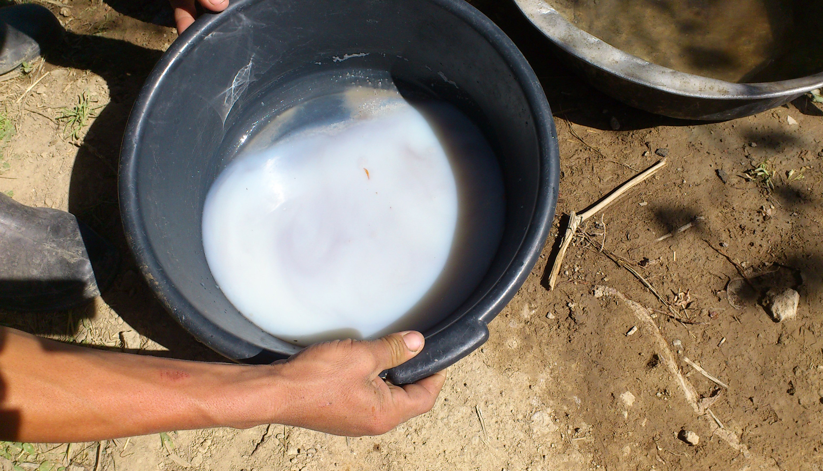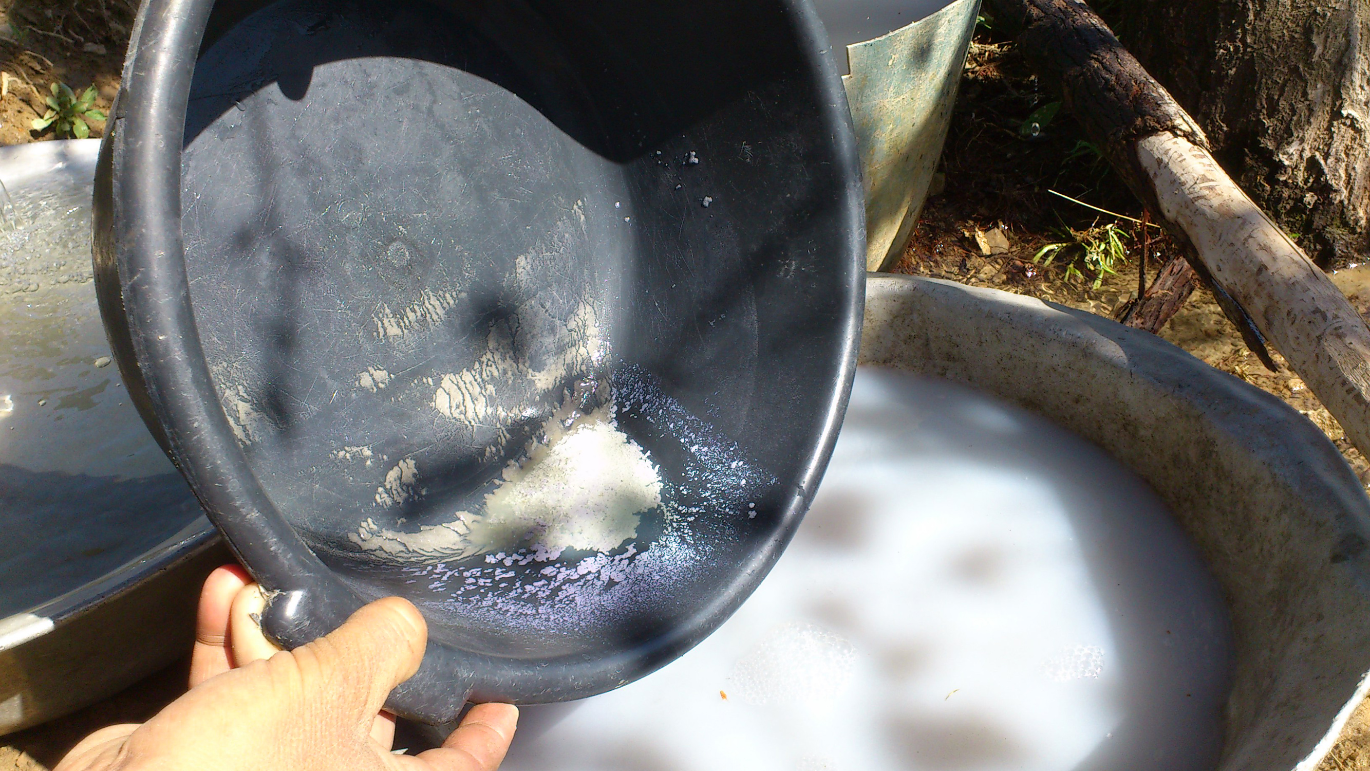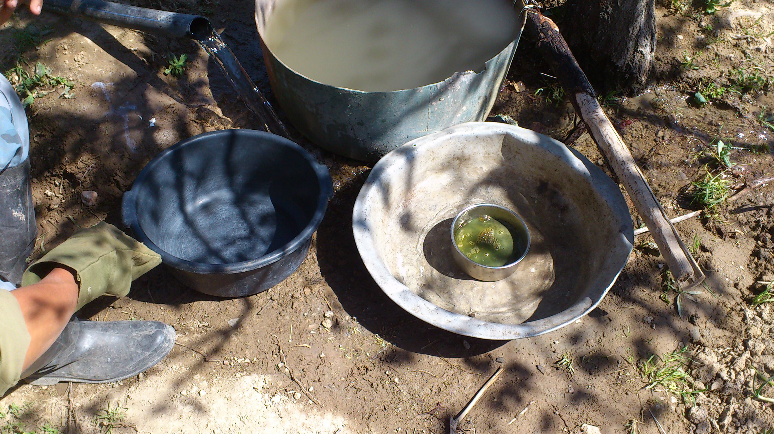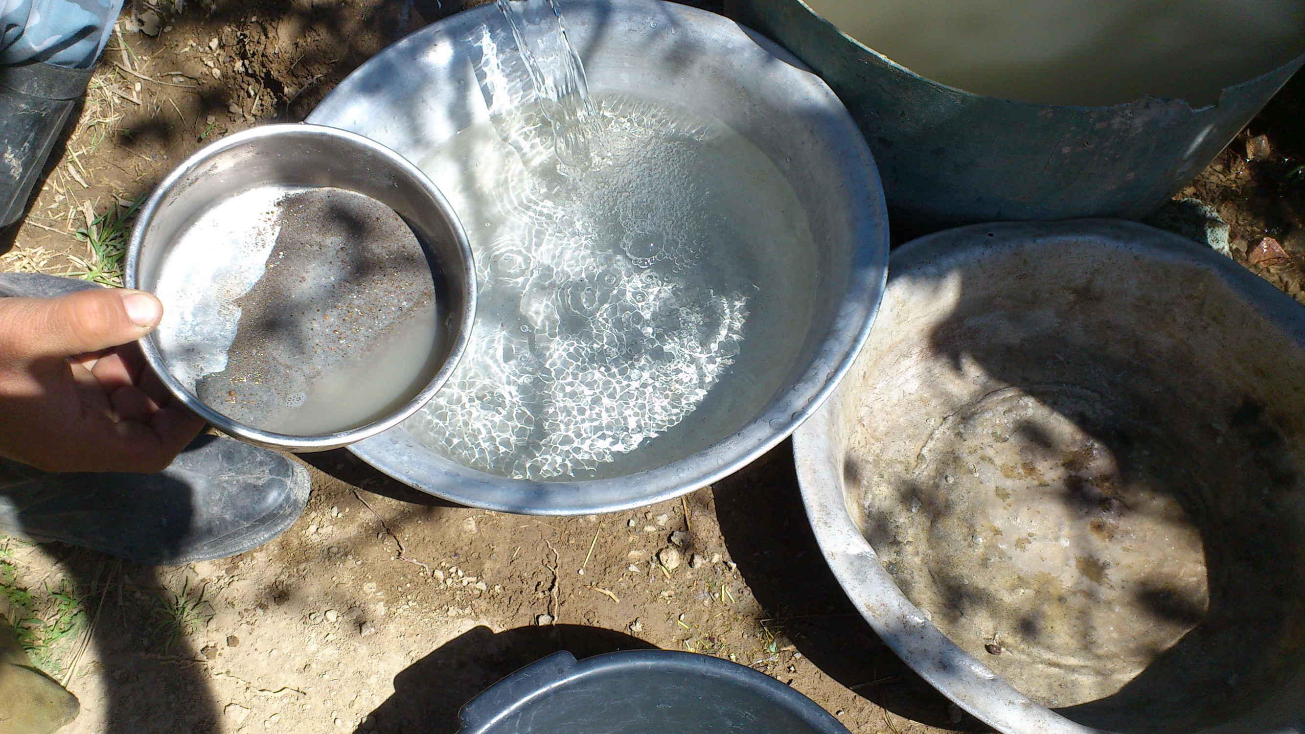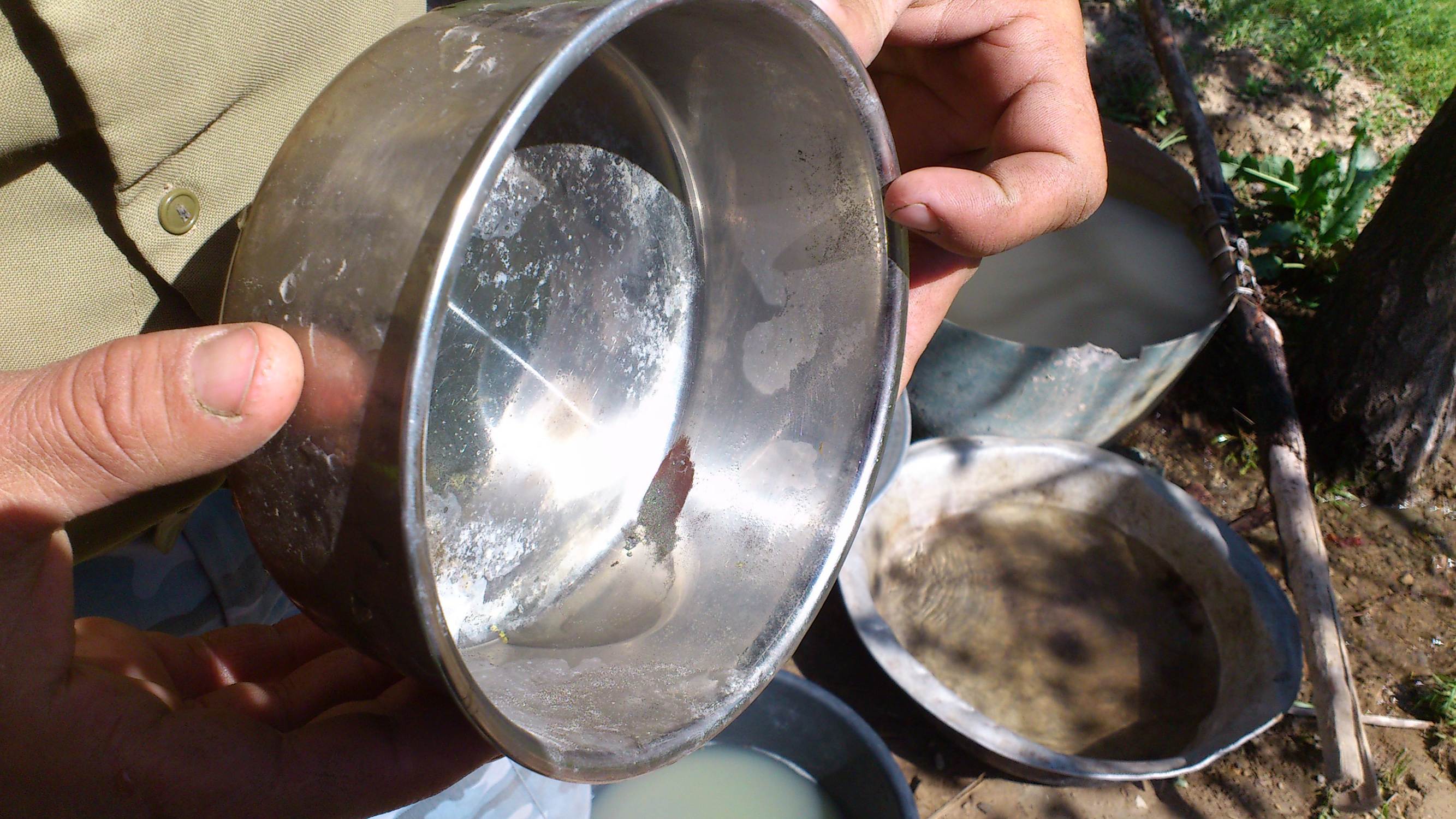 «Теперь полученную пыль нужно промыть и таким образом немного её обогатить», - с этими словами Бахром вручил мне в руки два алюминиевых таза, а сам взял миску с золотосодержащей пылью и мы спустились в лощину, где протекал ручей.