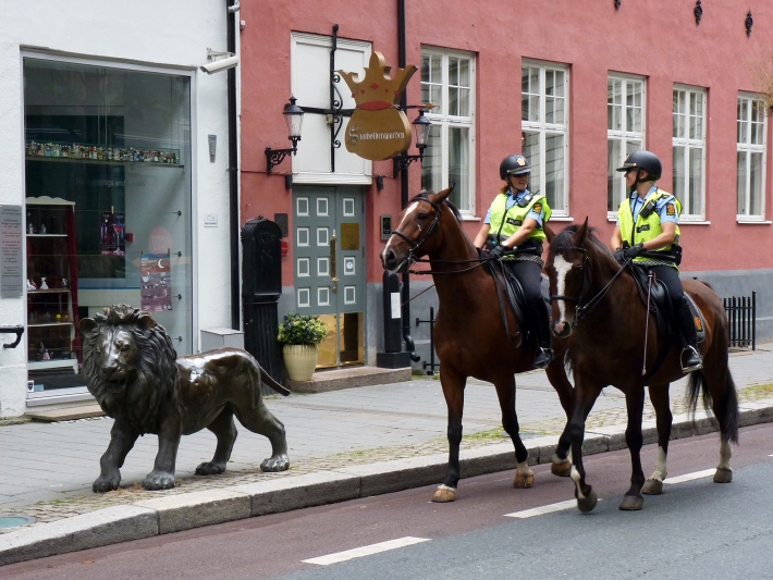 Столица, Осло, с населением в 600 тысяч жителей (а с пригородами – 700-900) – типичный североевропейский портовый город. Море, Мунк, старинные и «футуристические» здания, мощенные камнем дороги, кафе, рестораны, бары, сине-зеленые медные статуи с преобладанием тематики «ню», очевидно наиболее любимой горожанами. Изображения неодетых прелестниц я встретил даже в здании правительства, там же обнаружился занимающий целую стену вид нудистского пляжа с большим количеством персонажей.