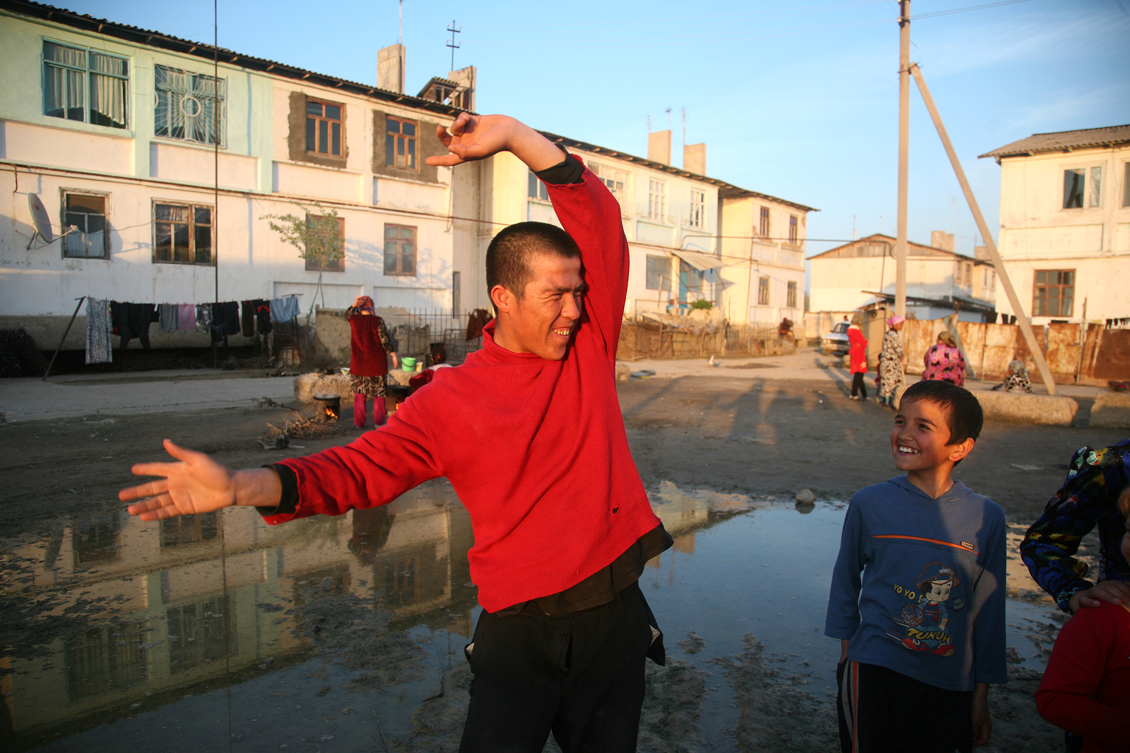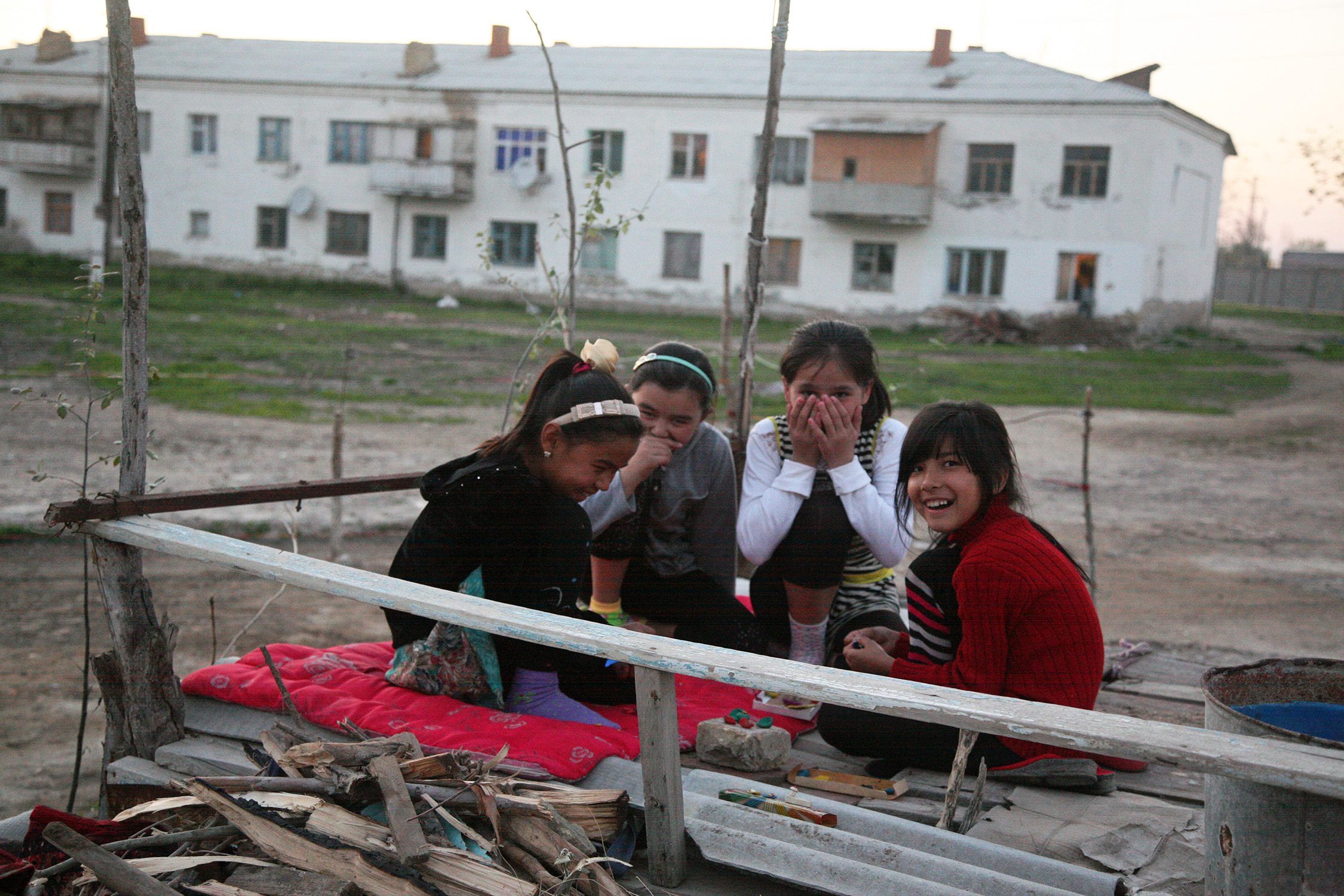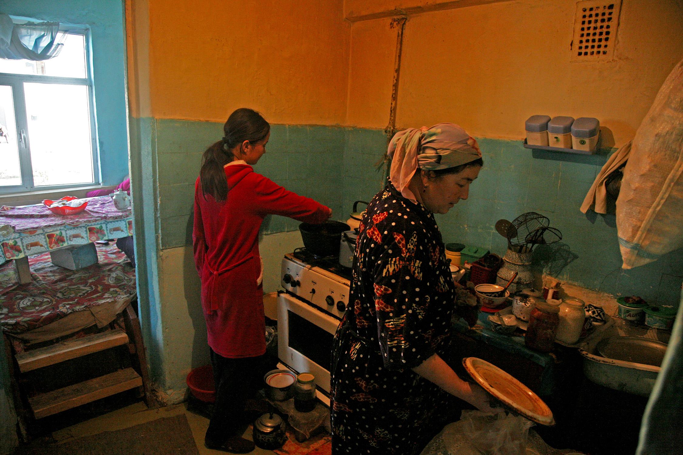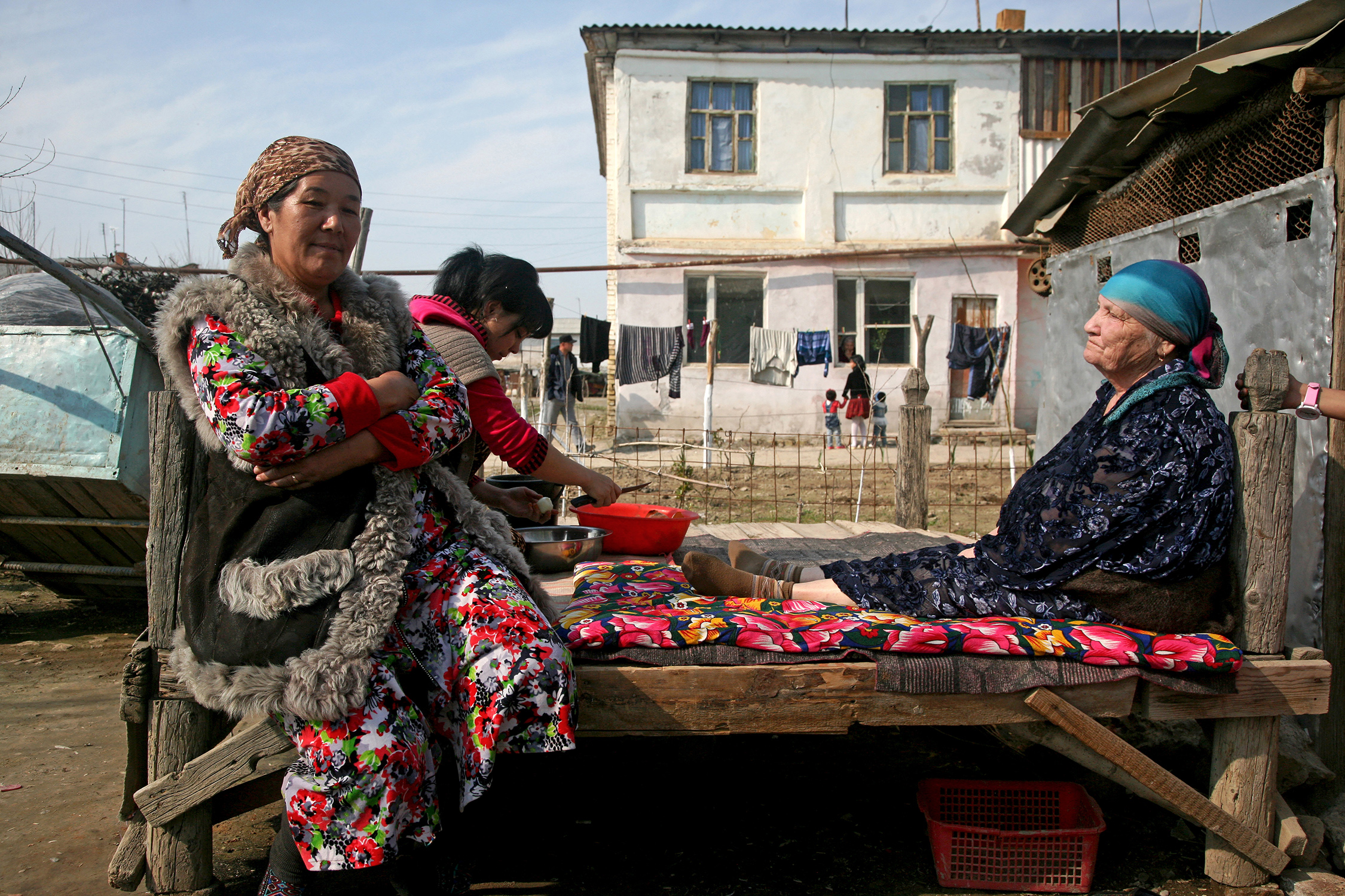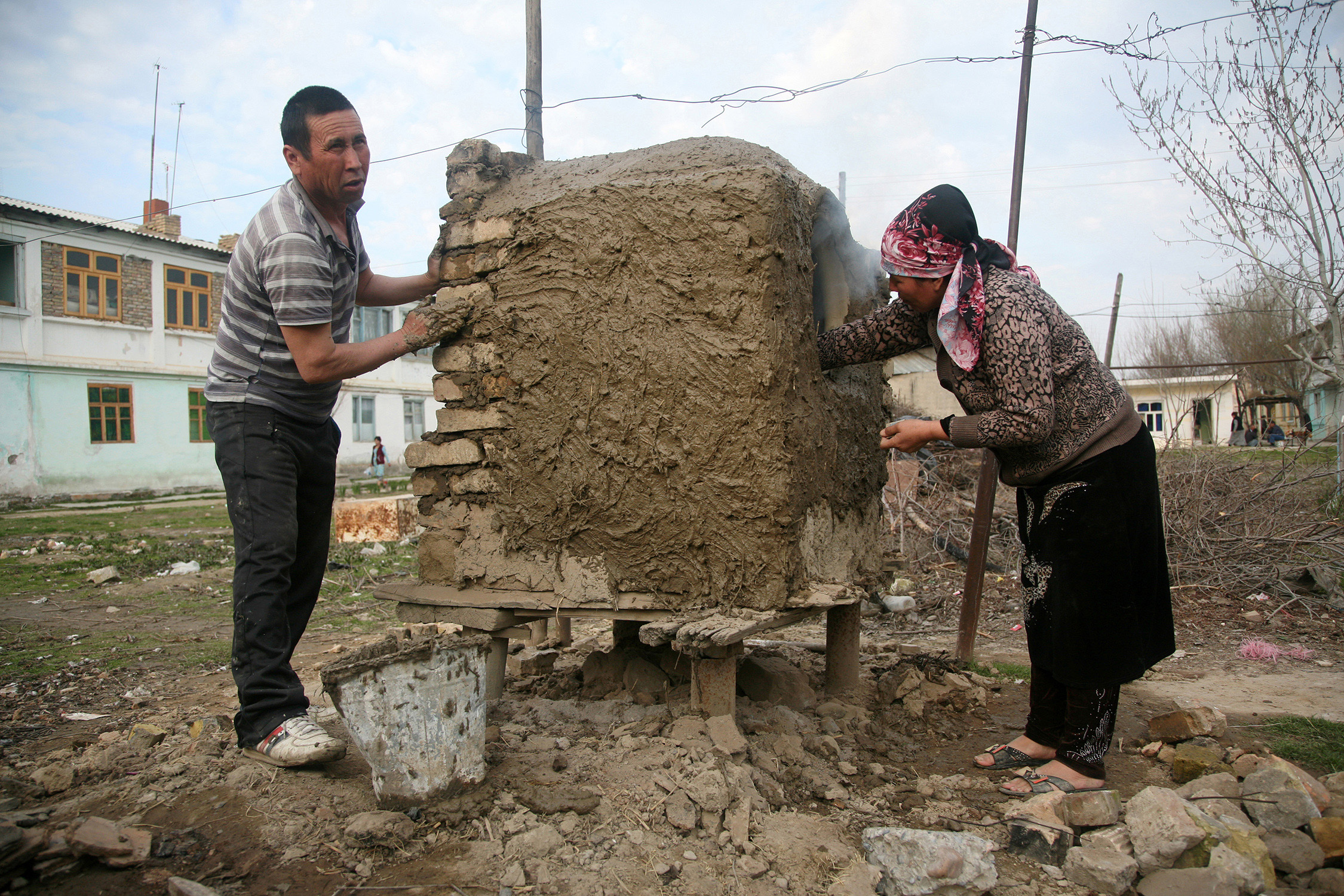 Рита, казашка, и её муж Гани (Гена). В детстве Рита играла на фортепиано, выигрывала конкурсы. Судьба занесла сюда. Готовит, печет пирожки для продажи на хлопкоперерабатывающем заводе, на скотном рынке. «Вот сегодня 200 штук продала». Русская община – Гани, Рита, Ибрагим (полуузбек-полутатарин), таджик Шароф и еще несколько человек. Угощают нас. Гани – заядлый рыбак. У него дома, как ни странно, есть интернет.