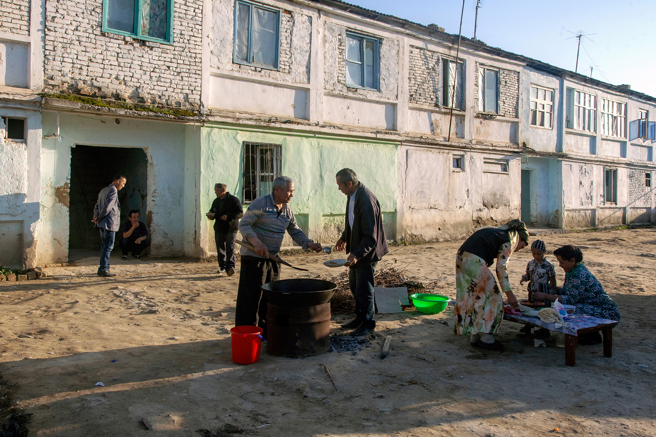Вечером все возле домов. Жарят рыбу, делают плов. Рыбу разносят пацаны, продают, – поблизости везде водосбросы (небольшие каналы, обильно заросшие камышом), там её и ловят.