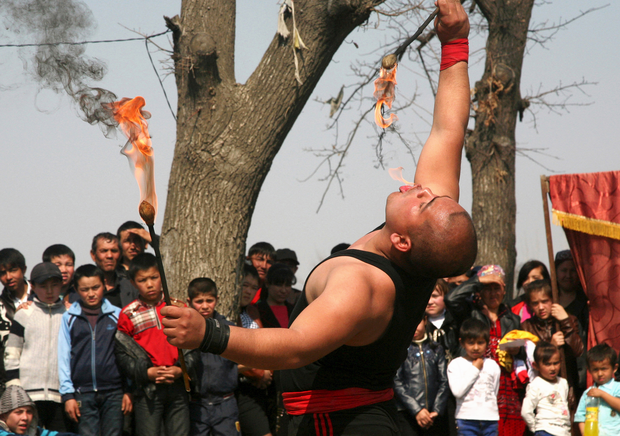 Труппа была стандартной – ведущий, канатоходец, палван (силач – прим. авт.), два клоуна, совершенно бездарные, жонглер огненными палочками. Гвоздем программы был прыгун-акробат. Он делал сальто прямо на бетонном или цементном полу, перепрыгивал через десяток выстроившихся в ряд детей (они только пригнули головы), а затем с разворота каратистским ударом ногой выбивал из рук партнера баклажку с водой за пределы обступившего их круга зрителей. Во второй раз баклажка подлетела высоко в воздух и, точно снаряд, врезалась в голову женщины, державшей на руках маленького ребенка. Видимо, вскользь, поскольку она, хоть и была шокирована, не слишком пострадала.