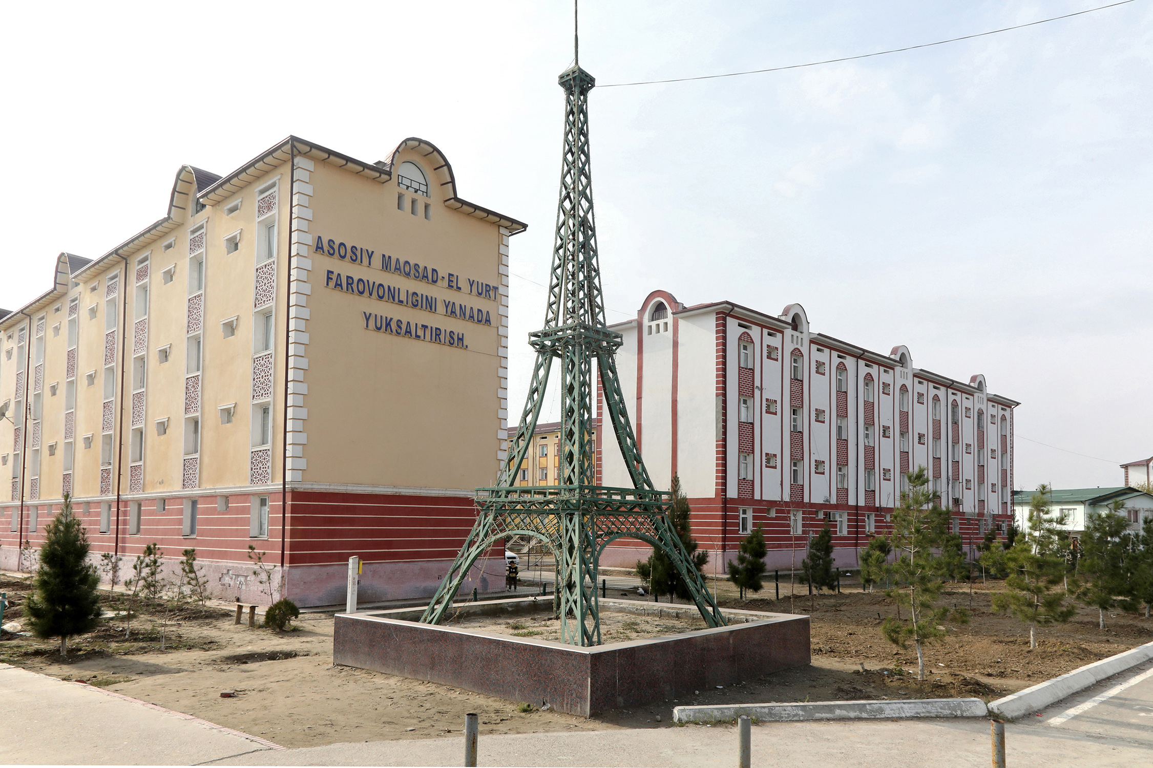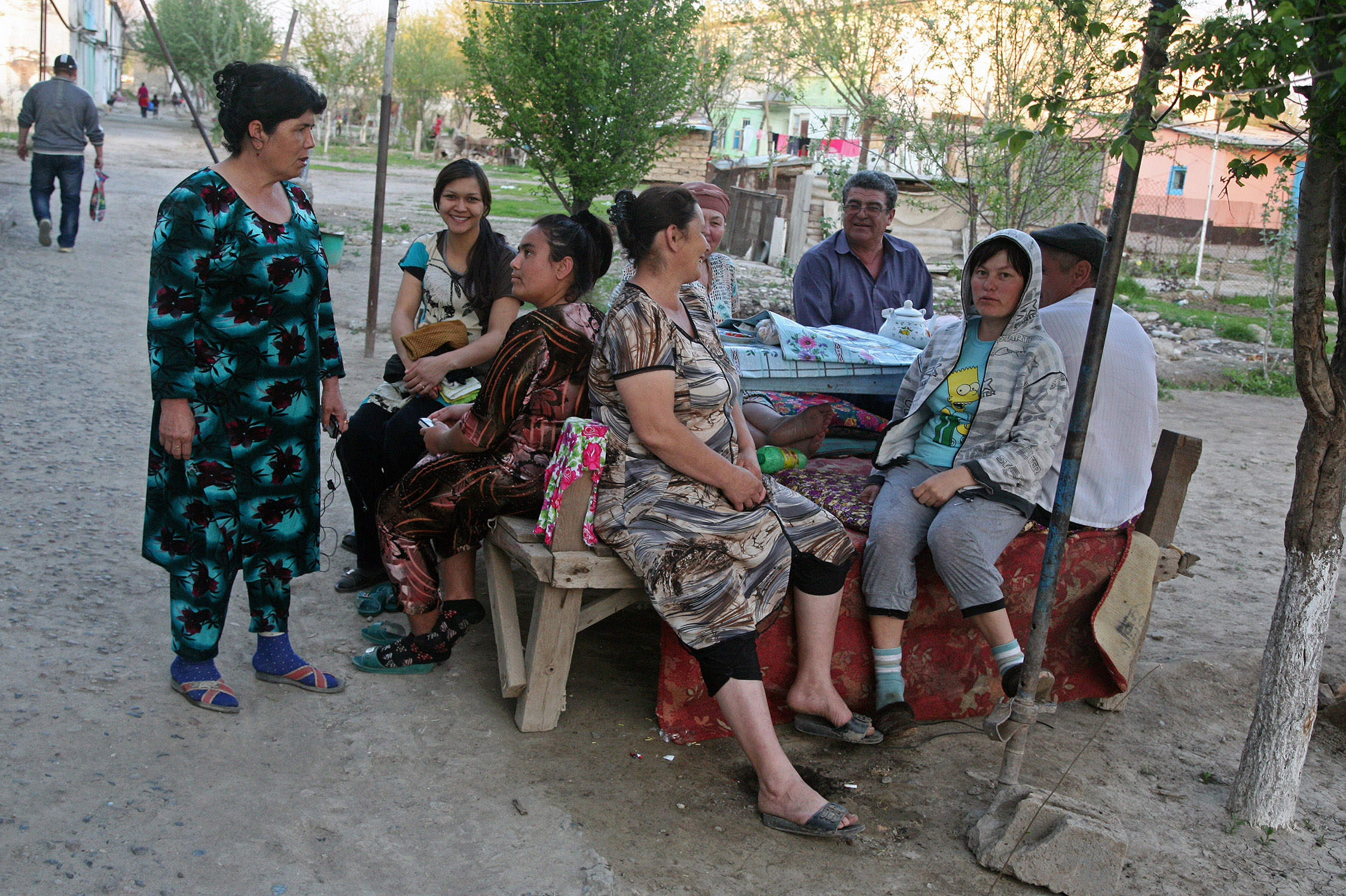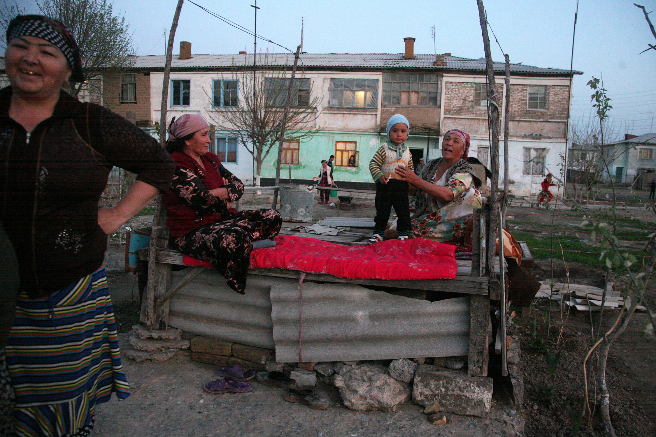 «Новый Узбекистан» оказался состоящим из полутора десятков аккуратных многоэтажек, едва ли не всю дворовую территорию которых занимали игровые площадки с тренажерами, прочными – чтобы их сразу не разломали. Там было полно детворы. Возле дома в большом казане делали плов. В соседнем дворе на цветастом одеяле сидела компания мужчин, играли в карты, пили кока-колу. По их словам, всё было нормально. Проехали дальше, таксист высунулся и спросил группу женщин, как они живут – есть ли газ, поднимается ли вода на последние этажи. Они сказали, что да. Шофёр кивнул на меня – «Это журналист», и одна тут же картинно добавила «Рахмат Мирзиёевга». («Спасибо Мирзиёеву»).