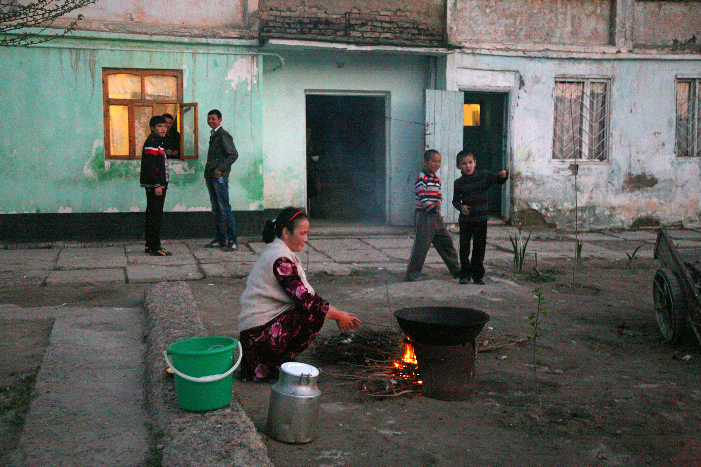 Поговорил с пожилой женщиной, Хаётхон. У нее внук, Бунёд, каратист. Тренируется. Какой-то там дан. Хаётхон сообщила, что газ в этом году был зимой, а в прошлом почти не было. Они отапливались так: поставили в комнату на табуретку кухонную электродуховку, от нее тепло идет.