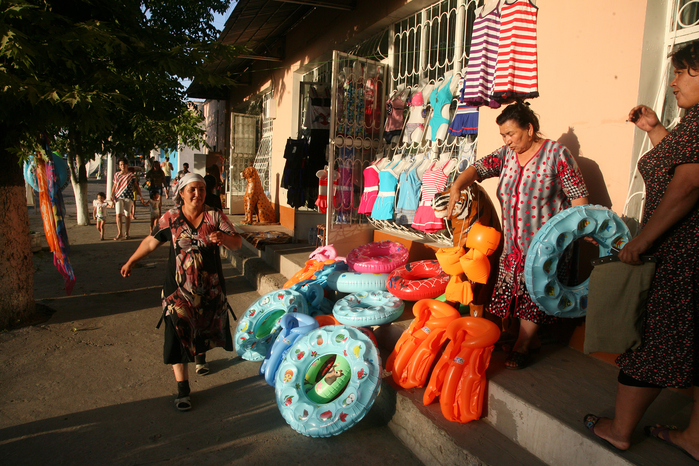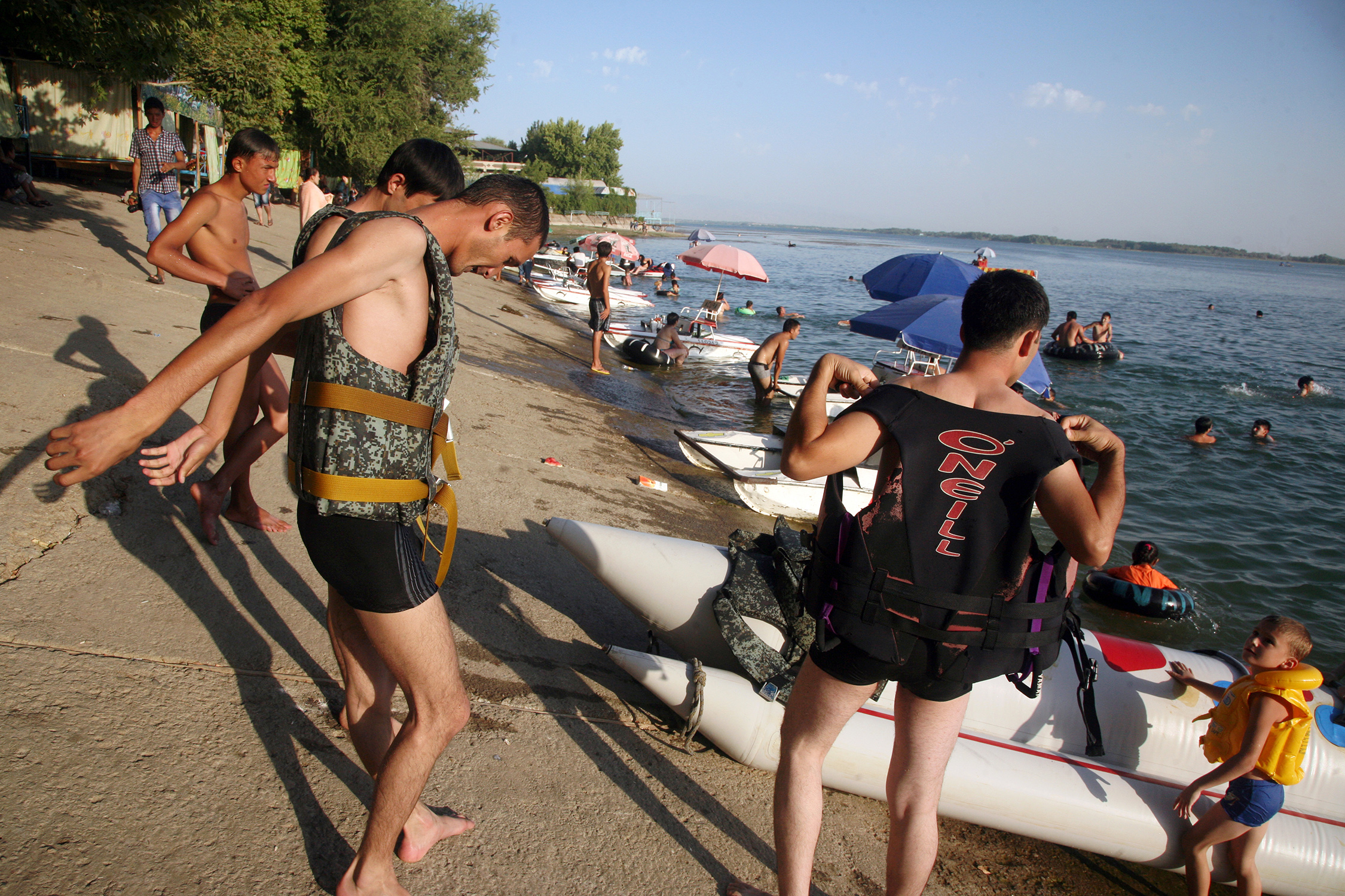 Но купальный сезон недолог. В середине лета воду начинают подавать на хлопковые поля, и она отступает от берега, водохранилище быстро мелеет, а поток отдыхающих иссякает.
