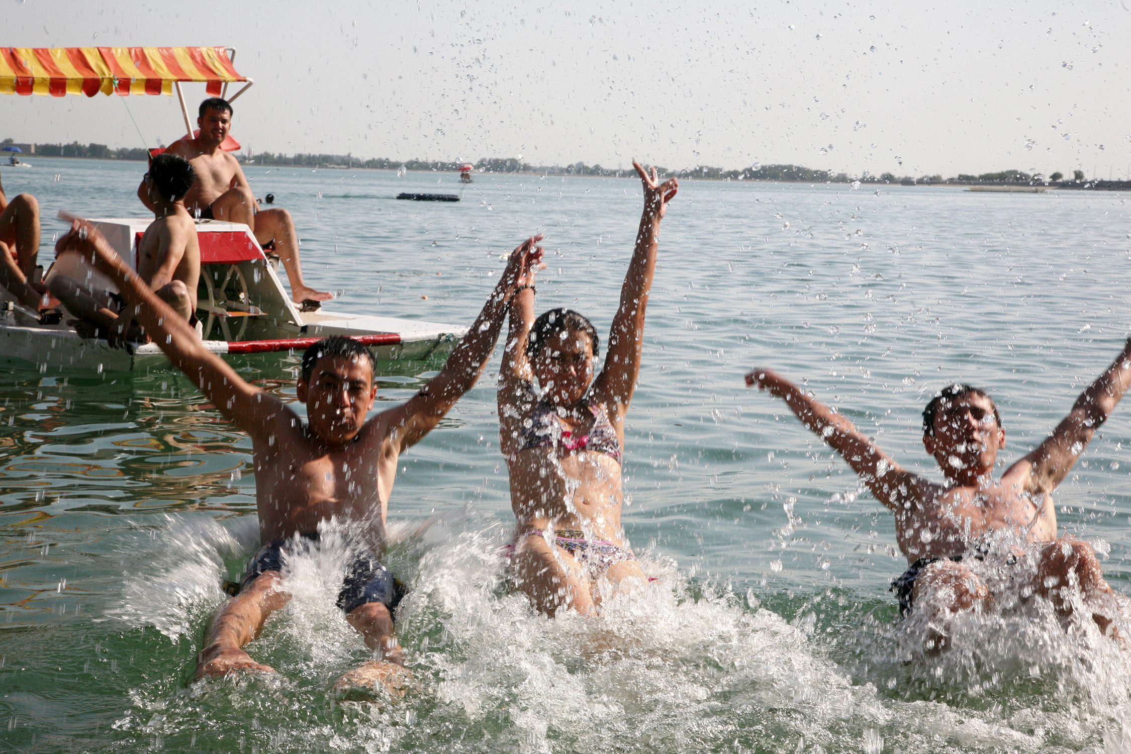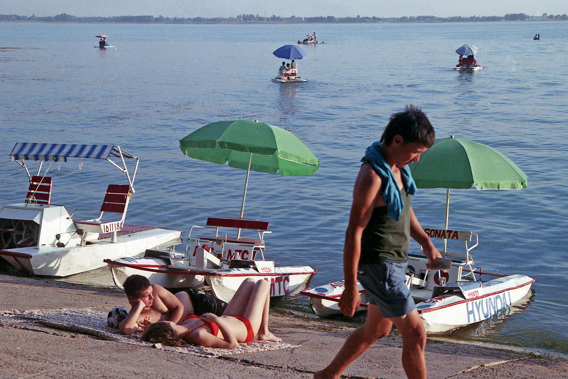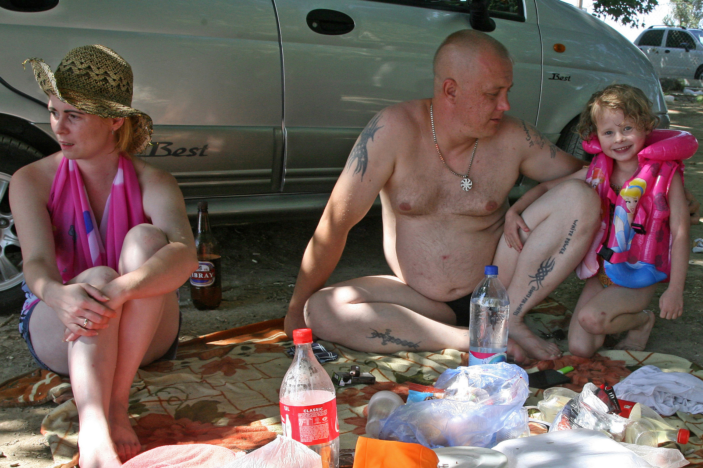 Доступная зона отдыха сократилась до нескольких сотен метров. Берег, где мы когда-то свободно купались и загорали, был захвачен и застроен. «Пляж» в виде забетонированного спуска в воду теперь ограничивался линией топчанов, которая подходила почти к самой воде. К ним была налажена бесперебойная доставка арбузов, чая и пива. Надо признать, что весной, когда купальный сезон начинается, здесь все-таки неплохо. Конечно, дети рады поездке к «морю» в любом случае.
