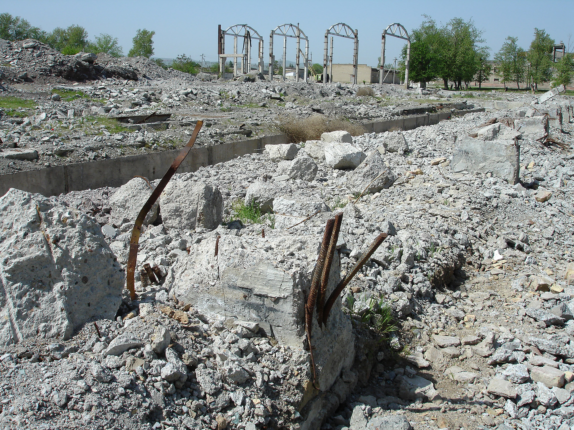 …На остатках КСМ-1 врываются в землю люди-кроты. Само предприятие разрушено и превращено в пыль и прах – в бетонную крошку. Кругом возвышаются нагромождения бетонных обломков. Мощные железобетонные опоры расколочены ломами и кувалдами – из них пытаются вытащить арматуру. Еще издали слышны мерные удары молота.