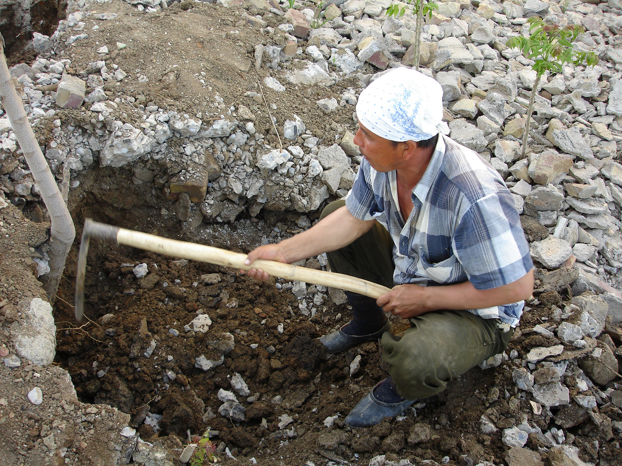 Уборка хлопчатника – занятие более выгодное, чем долбежка бетонных блоков, поэтому во время уборочной страды бетонодробительные работы почти прекращаются, в земле тоже ковыряются лишь немногие. Но стоит хлопковой кампании завершиться, как люди вновь вооружаются ломами и кувалдами и отправляются крушить остатки «имперского прошлого».