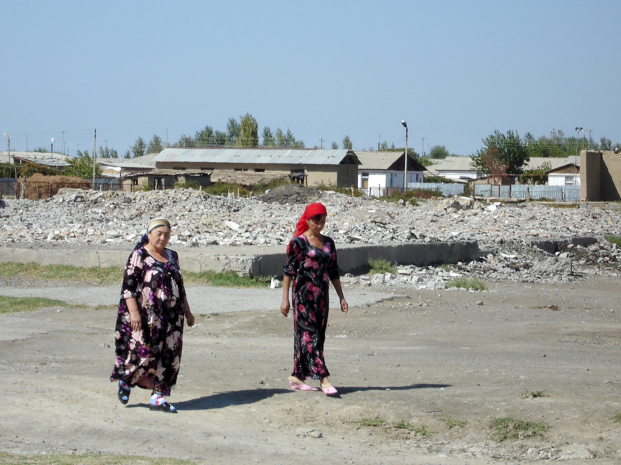 Когда-то земли, на которых располагался совхоз, входили в состав Казахской ССР, но с освоением Голодной степи (примерно в 60-е годы) были переданы Узбекистану. Сегодня казахов здесь становится все меньше – в Казахстане им выдают материальные пособия как переселенцам-оралманам. Остаются, в основном, узбеки, которым уезжать некуда. «Работа-то есть - денег нет», - говорит местный фермер, видимо, гадая, что нам понадобилось в этой депрессивной местности.