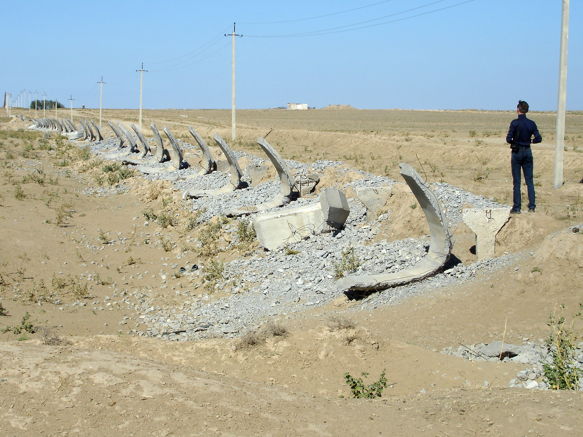 Особый разговор об арычных лотках, по которым вода подавалась для полива. Бетонные ложа арыков, которые тянулись на десятки километров, проходя над оврагами и низинами и обеспечивая поля водой, тоже оказались под прицелом. В них есть металлическая основа, сетка, за которую можно выручить какие-то гроши, поэтому сегодня вместо лотков на сотни метров, а иногда на целые километры вдоль дорог тянутся полосы разбитого, измельченного в щебенку бетона. Вода на эти земли уже не подается и тысячи гектаров полей пришли в негодность, в упадок.