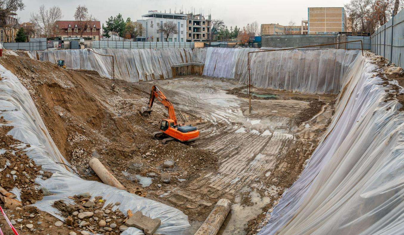 Однако за семь месяцев застройщик «Tako Sales» далее глубины 12 метров не продвинулся ни на шаг, поскольку в этой земле обнаружились грунтовые воды. Строители еще летом прошлого года пригнали сюда специальную технику, с помощью которой начали откачивать воду и сливать ее в проходящий вдоль улицы арык. С тех пор вода продолжает откачиваться, и конца-края тому не видно.