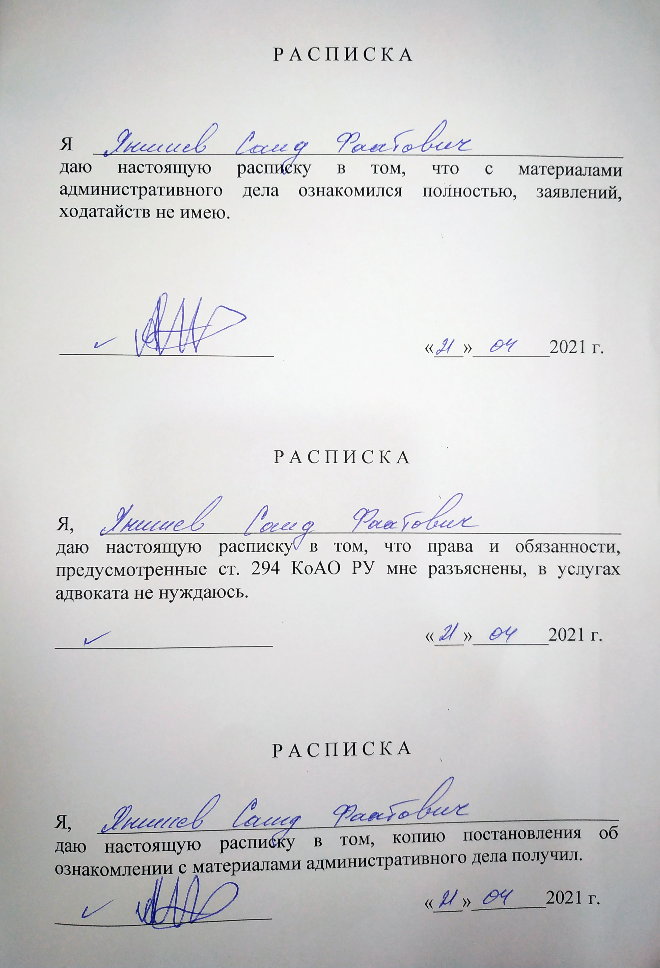 Следует отметить, что оба заявления были написаны 21 апреля, то есть в тот самый день, когда журналист был задержан.